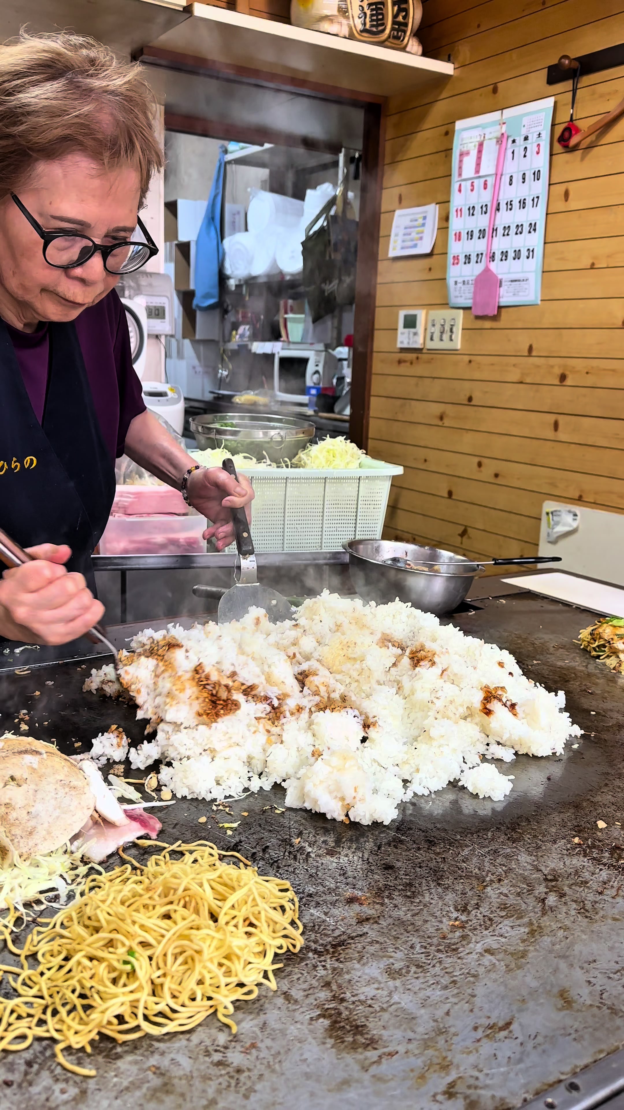 広島市南区皆実町の『ひらの』は1989年創業のそば店。名物はそばとガーリックライスを組み合わせた『そばライス』で、鉄板を囲んで焼きたてを楽しめる全17席の空間です。ランチ11:00–13:30、ディナー17:00–20:00、予算は〜1,000円。食べログの百名店にも選出されています。