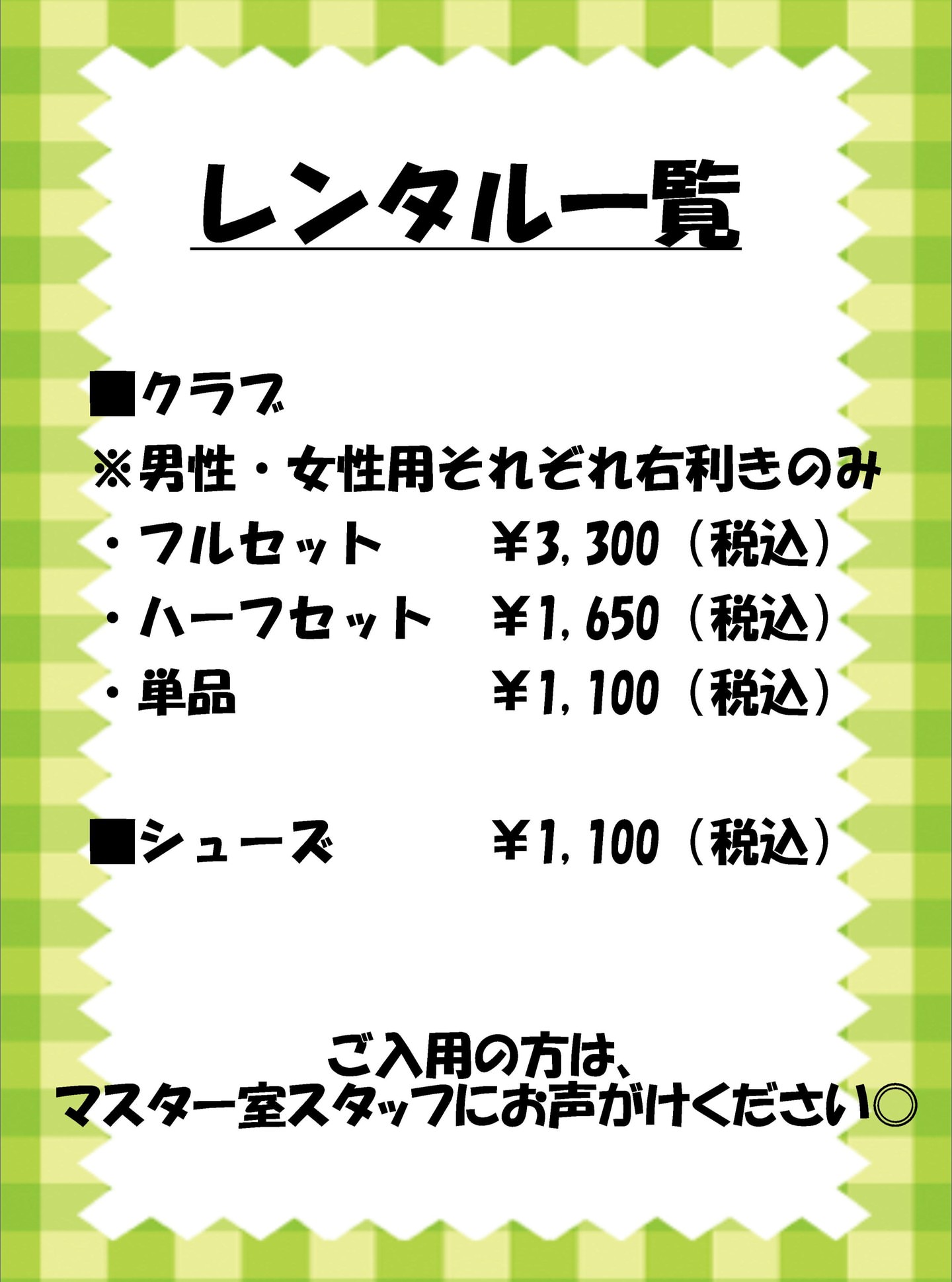 ■レンタル用品一覧