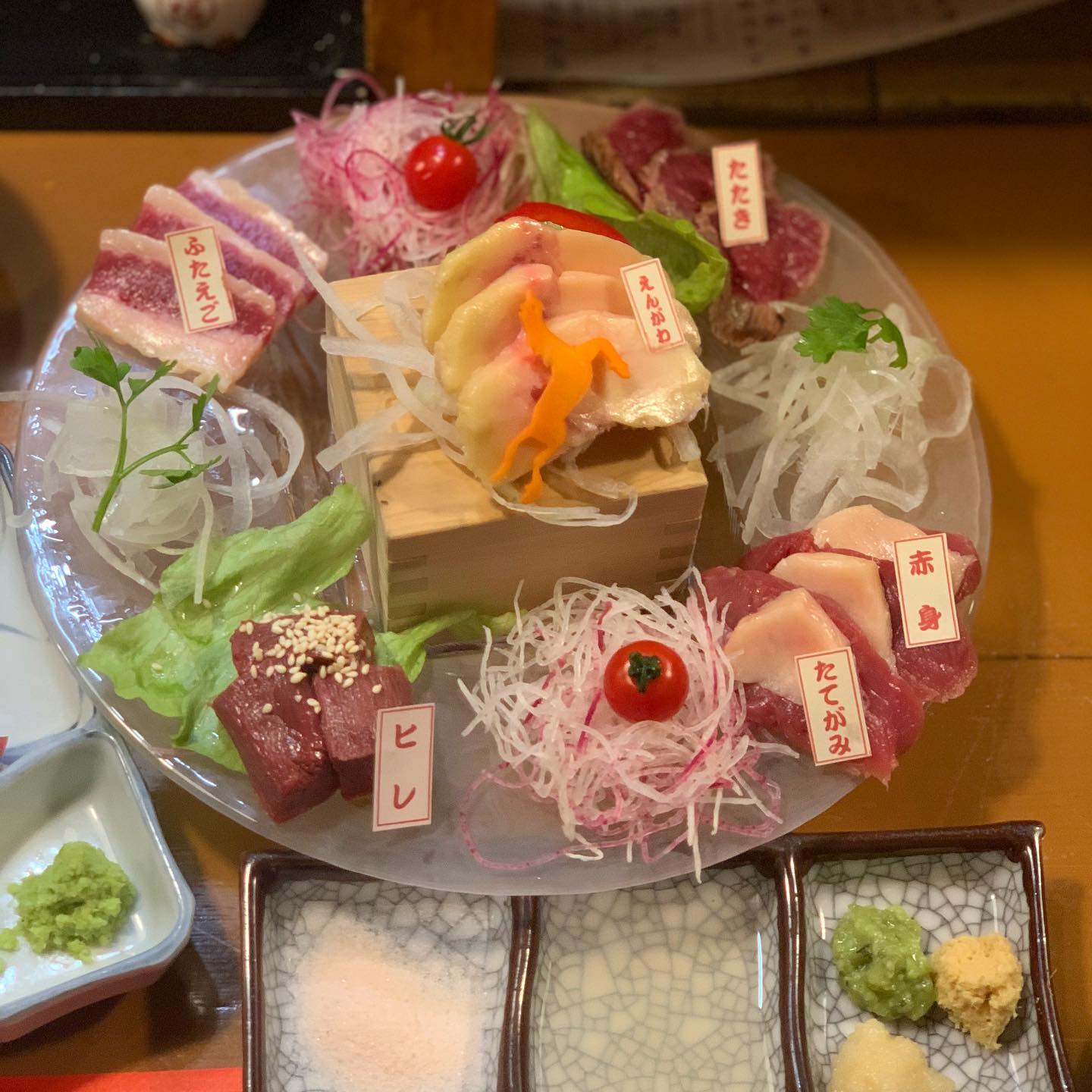 ◆馬刺し5点盛り3人前 1829円...