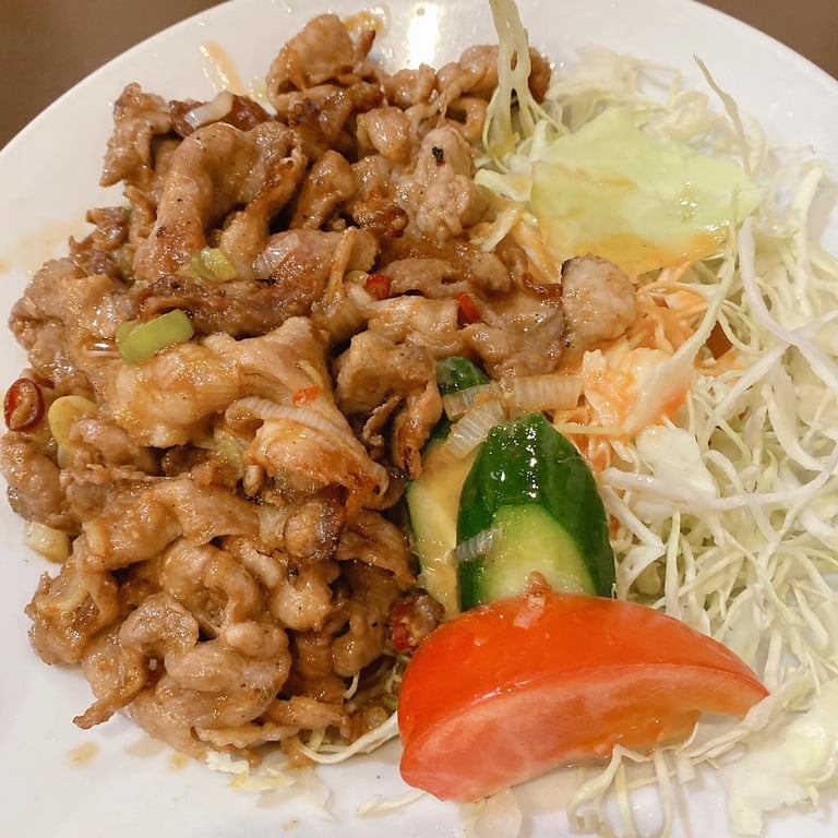 手打ち麺が人気のお店で青椒肉絲定食を。