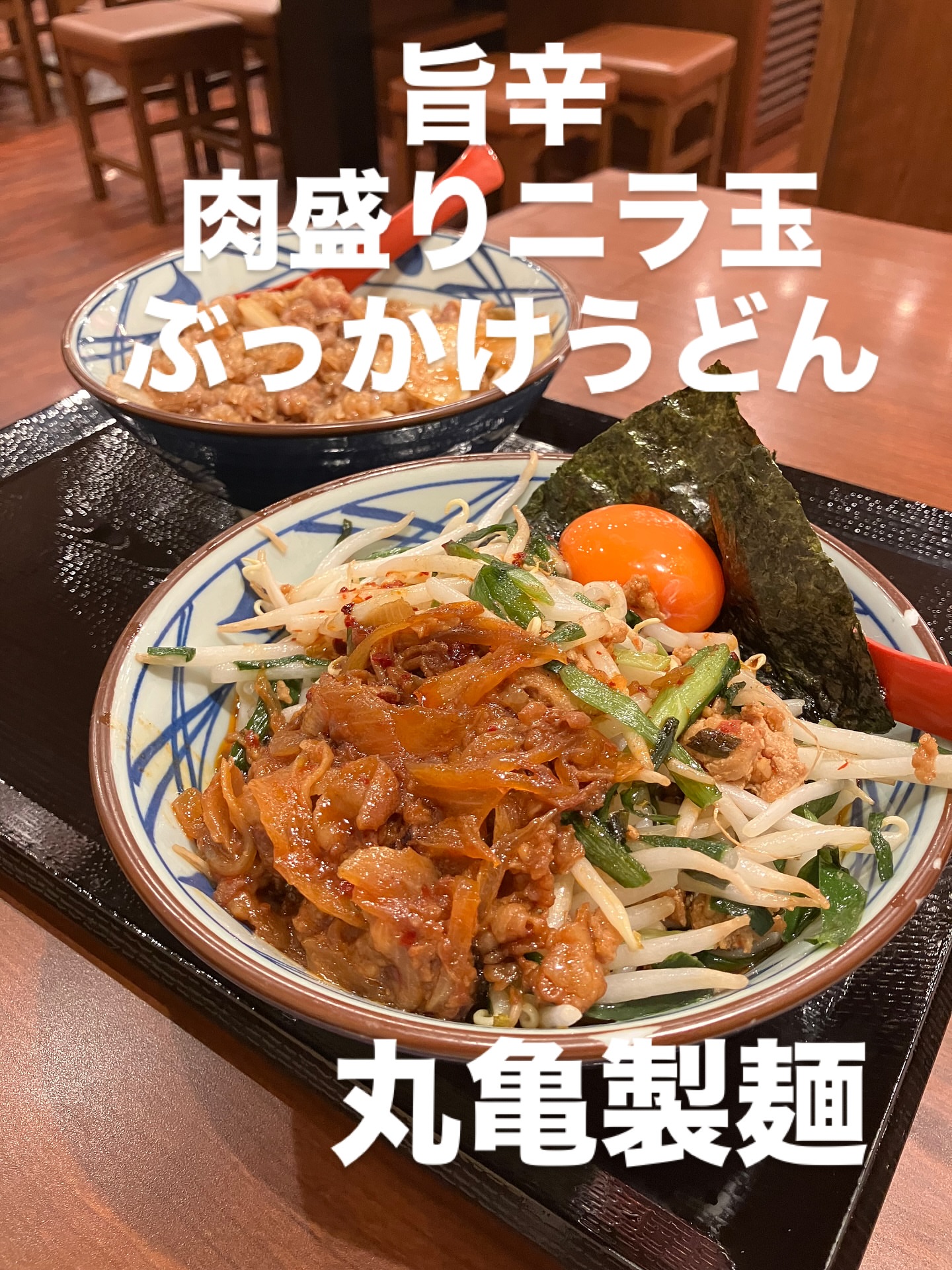 お久しぶりの @marugame_ 期間限定の旨辛肉盛りニラ玉ぶっかけは、白米必須🍚美味しかった〜...