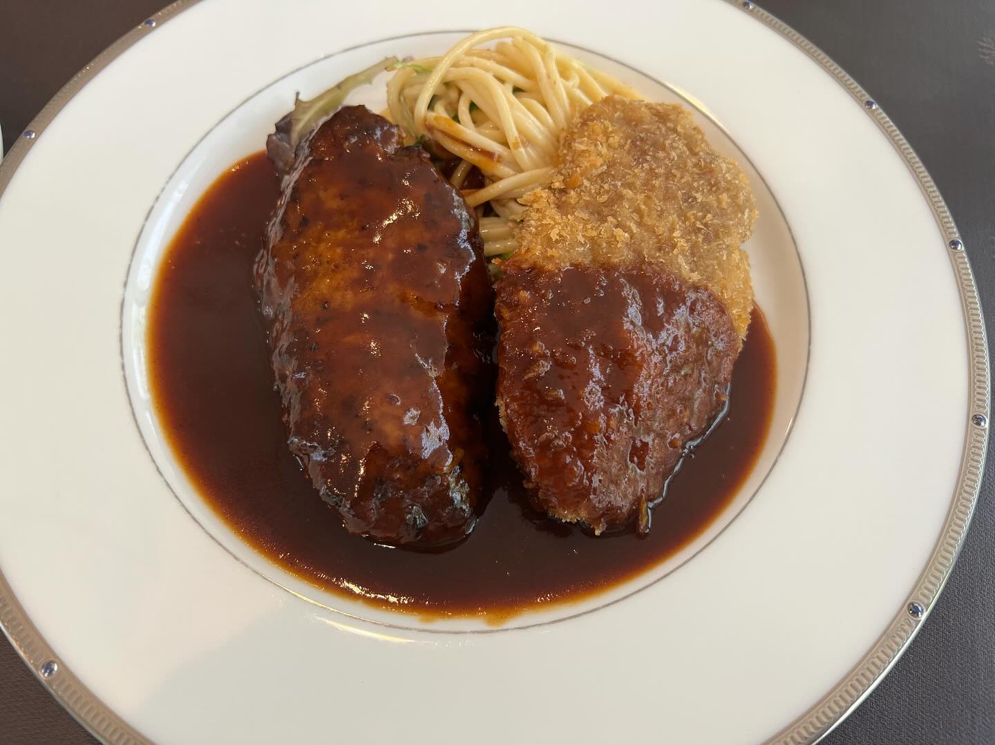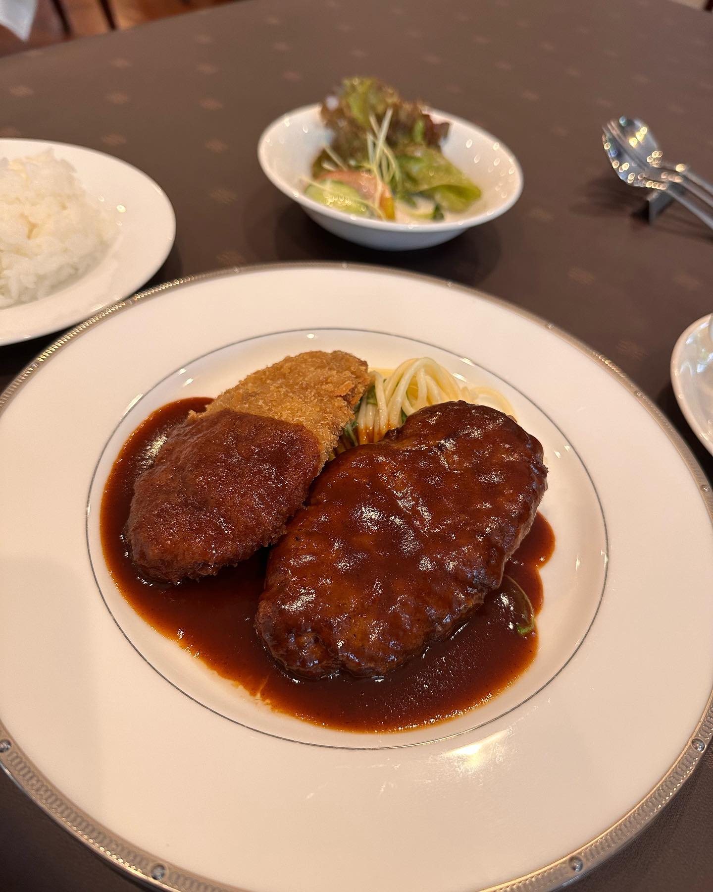 メンチカツ ハンバーグランチ😋デミグラスソースがとっても美味しかった😄