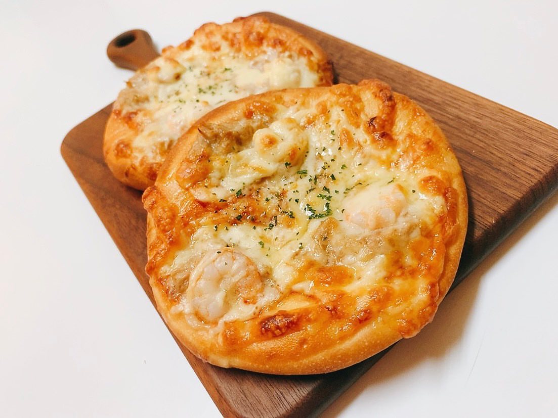 #エビとツナのピザ #米粉パン #ぶどう...