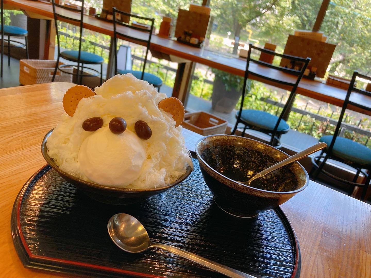 カウンター席から見える桜🌸が最高...