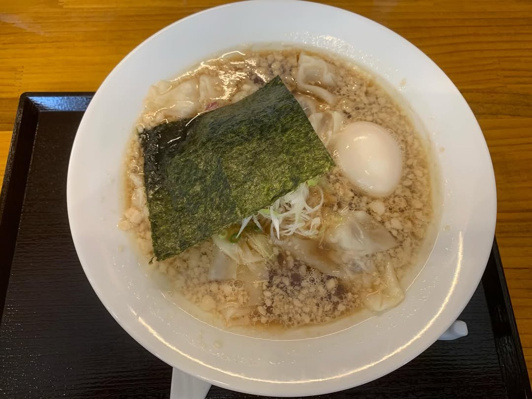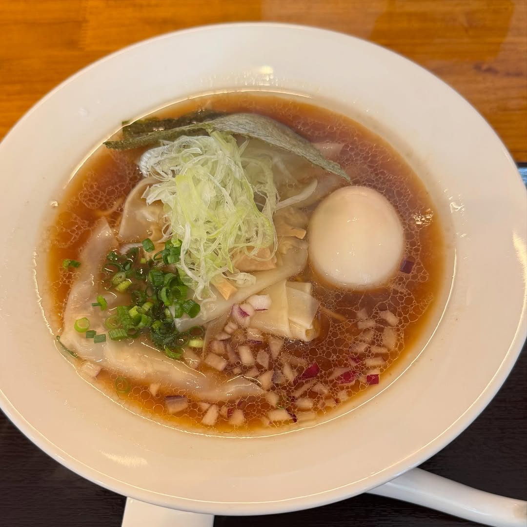 わんたん麺(醤油・平打ち麺オーダー・とろり半熟味玉・背脂トッピング)