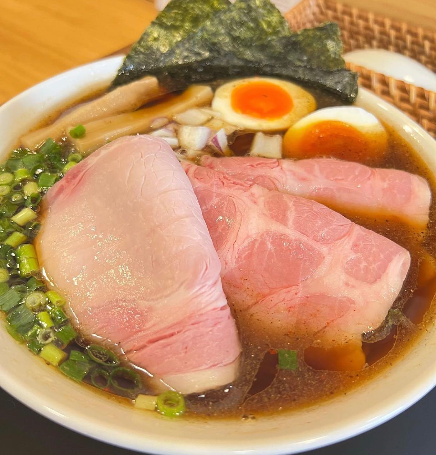 愛知県半田市の麺屋さくらは、特製さくらラーメンが自慢です。大判チャーシュー3枚・太メンマ4本・海苔4枚・名古屋コーチン味玉入りで1350円。11時から15時、駐車場あり。火・水が定休。