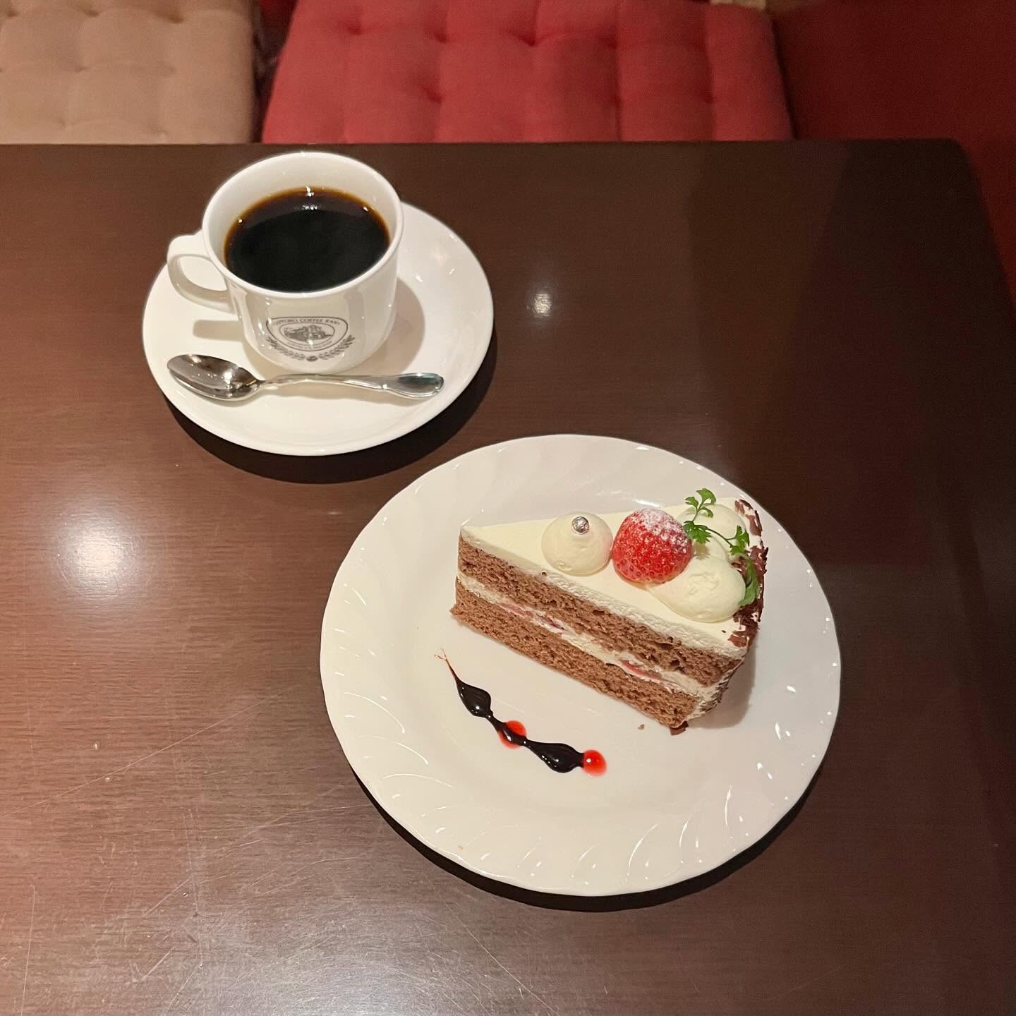 サッポロ珈琲館さんの新作ケーキ💭ふわふわのココアスポンジに生クリームとイチゴがデコレーションされていてかわいい✨