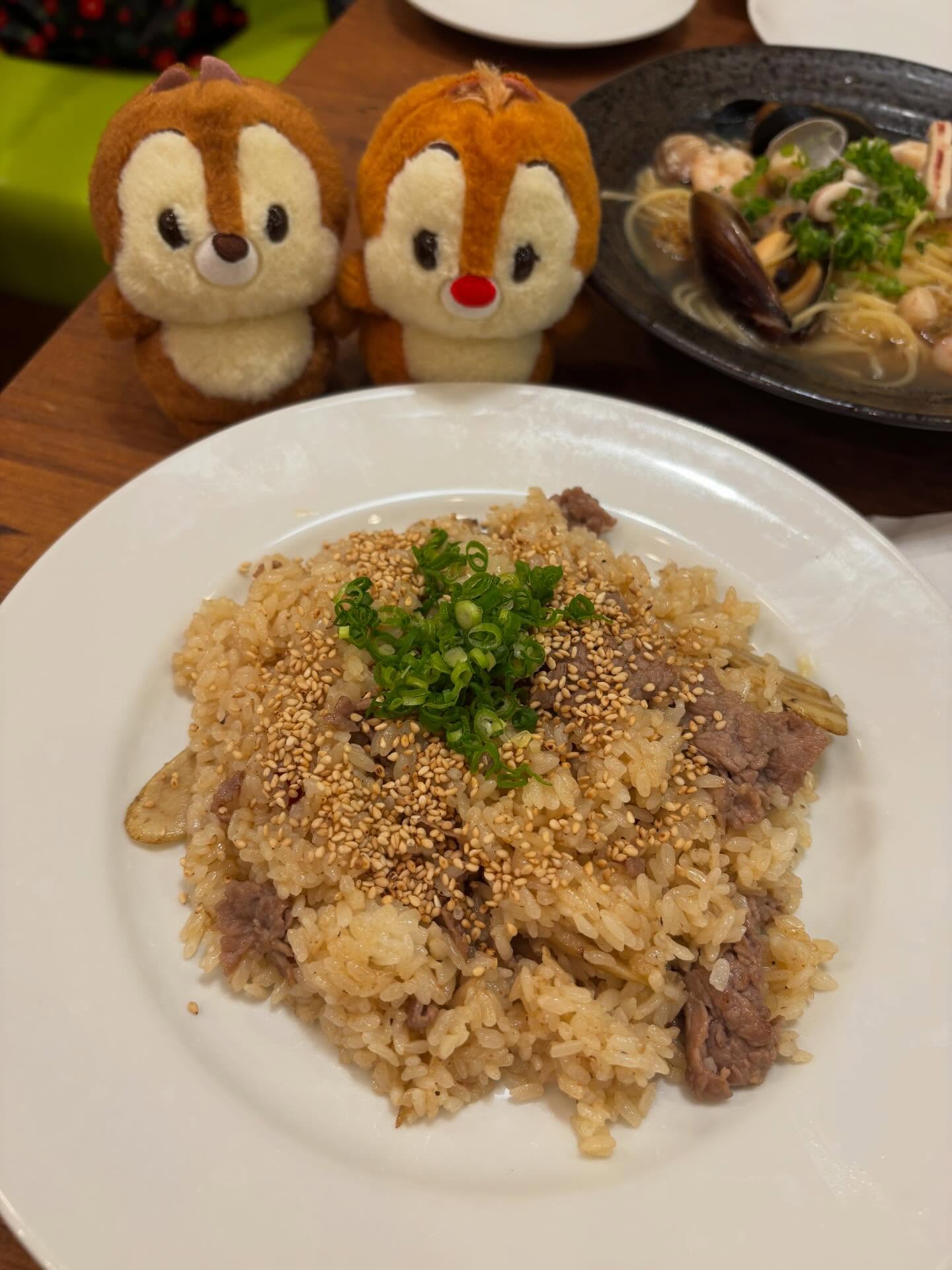 1枚目から4枚目は初めてのお店でピラフとスパゲティ食べたリス🍝