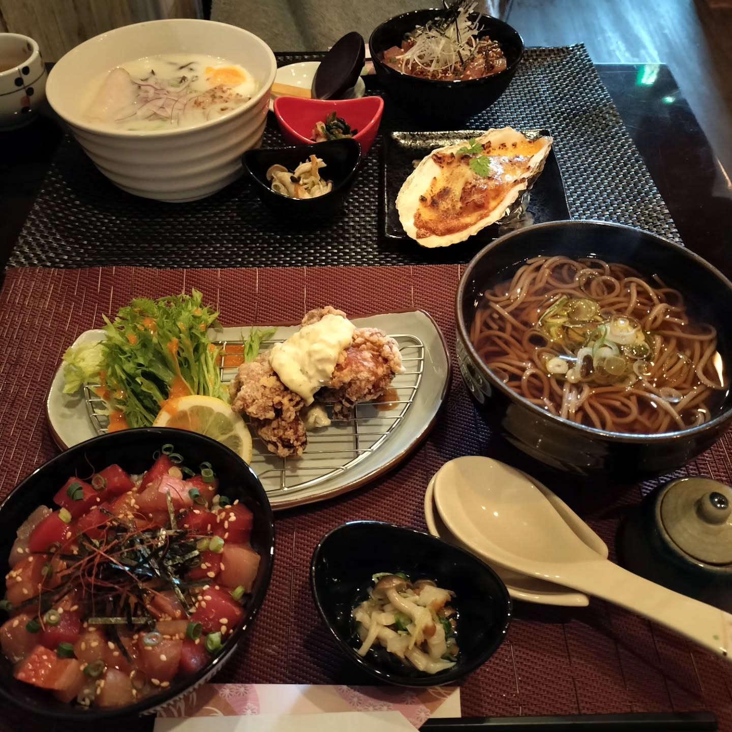 🐟本鮪と氷見寒鰤の海鮮丼と鶏ザンキ南蛮、お蕎麦