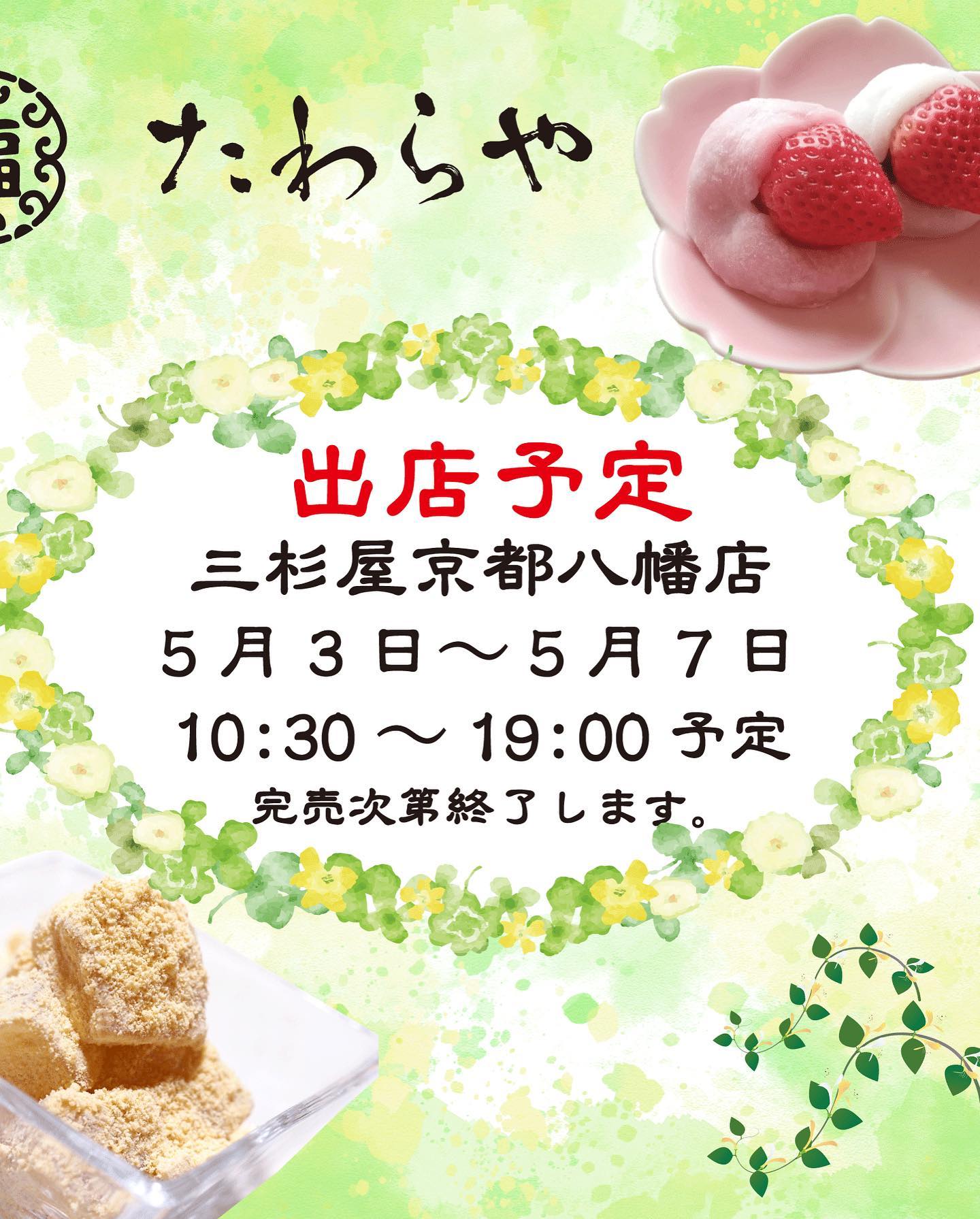 5/3(水)〜7日(日)のゴールデンウィーク中は三杉屋京都八幡店にて出店いたします😃