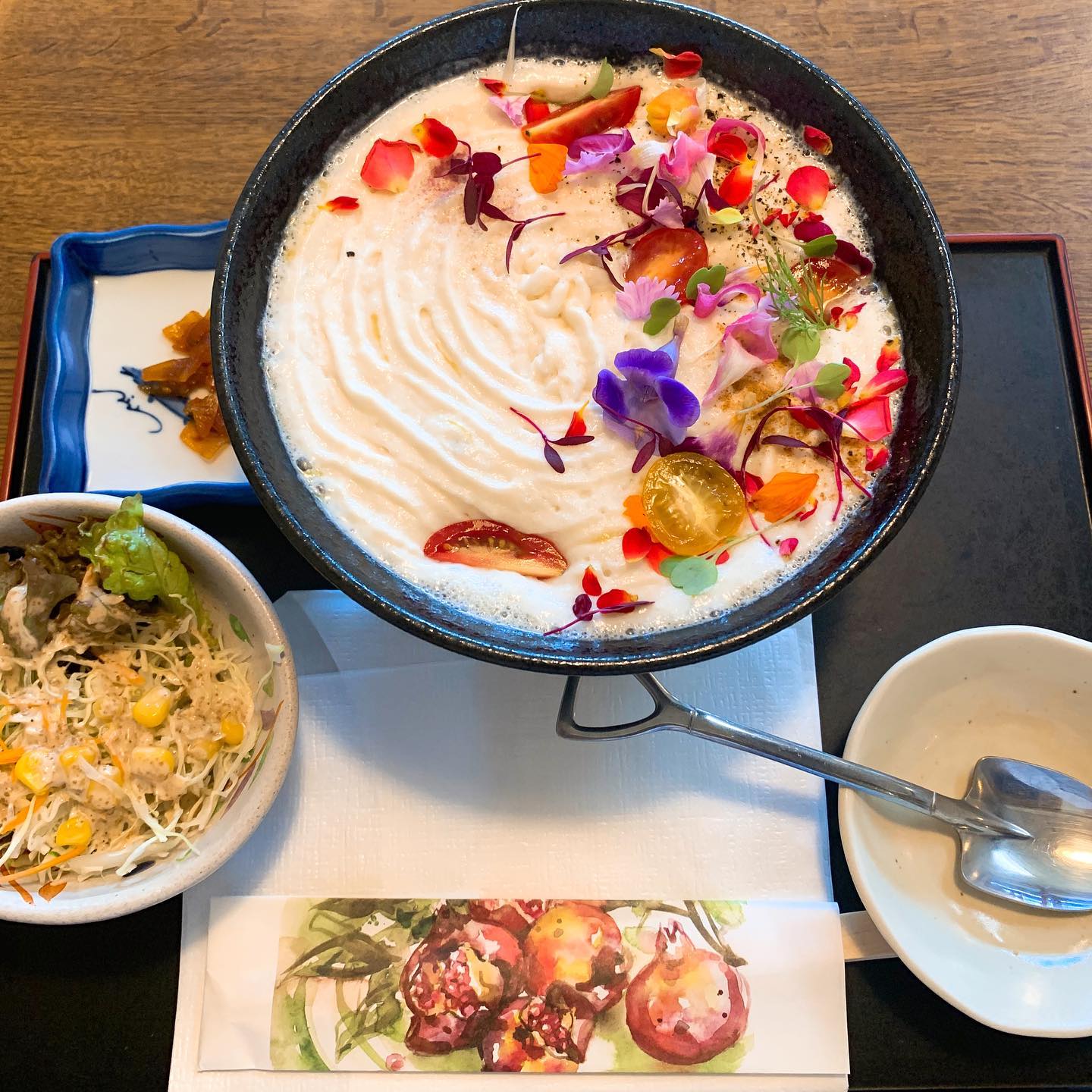 エディブルフラワーが綺麗でカレーうどんに見えないカレーうどん✨