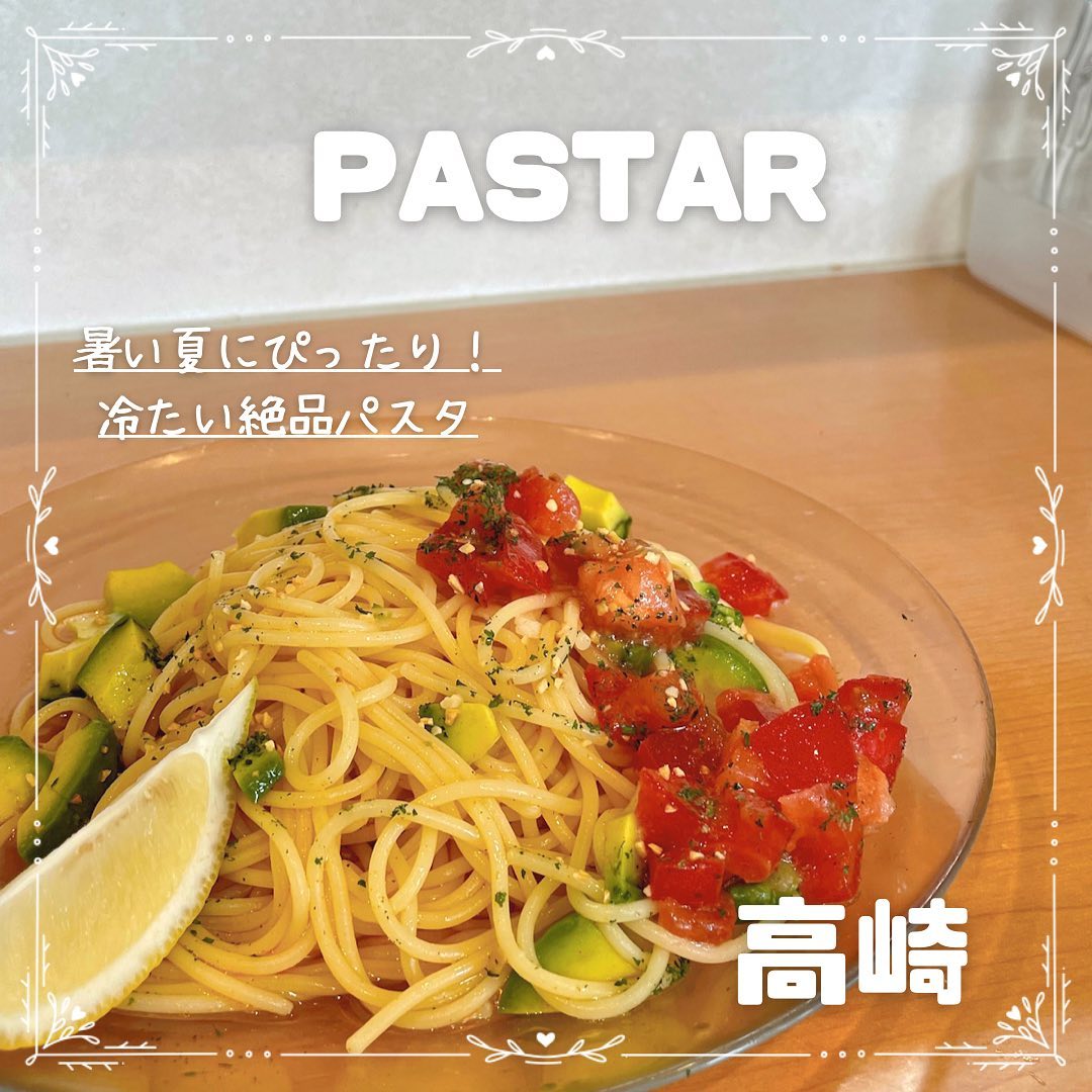 高崎市のパスタ専門店パスタールは、テイクアウトに対応した豊富なメニューが魅力です。どのパスタも美味しく、暑い日は冷製パスタもおすすめ。ペペロンチーノの冷製はトマトとアボカドの組み合わせが特徴です。