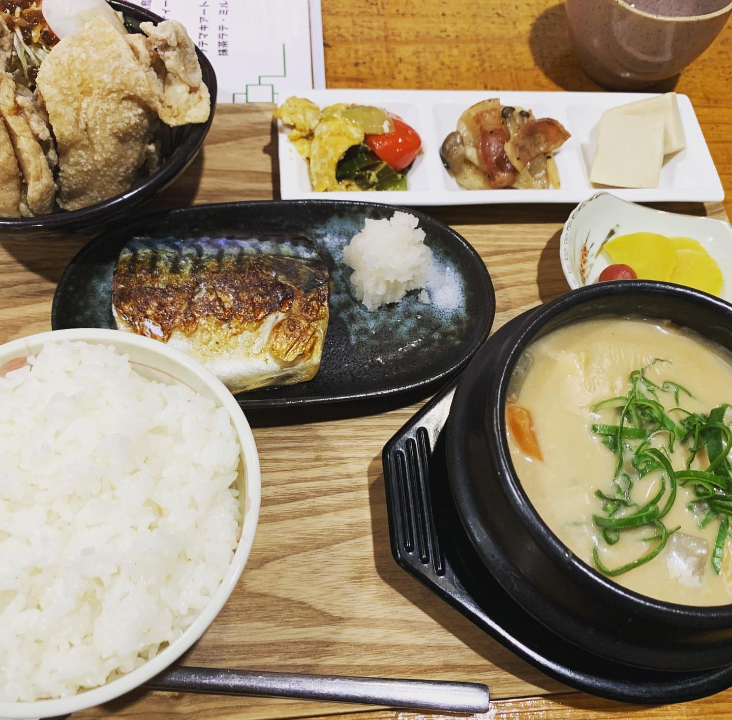 大好きな焼き鯖がついてるのを知らずに、から揚げを追加しお腹いっぱい😋 #から揚げはオプション #満腹野郎 #身も心もあったまる #昼飯
