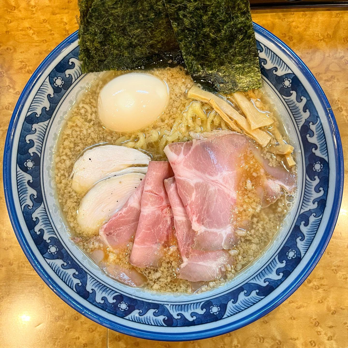 バランスの良い煮干し感と甘みの強い背脂があと引く一杯✨