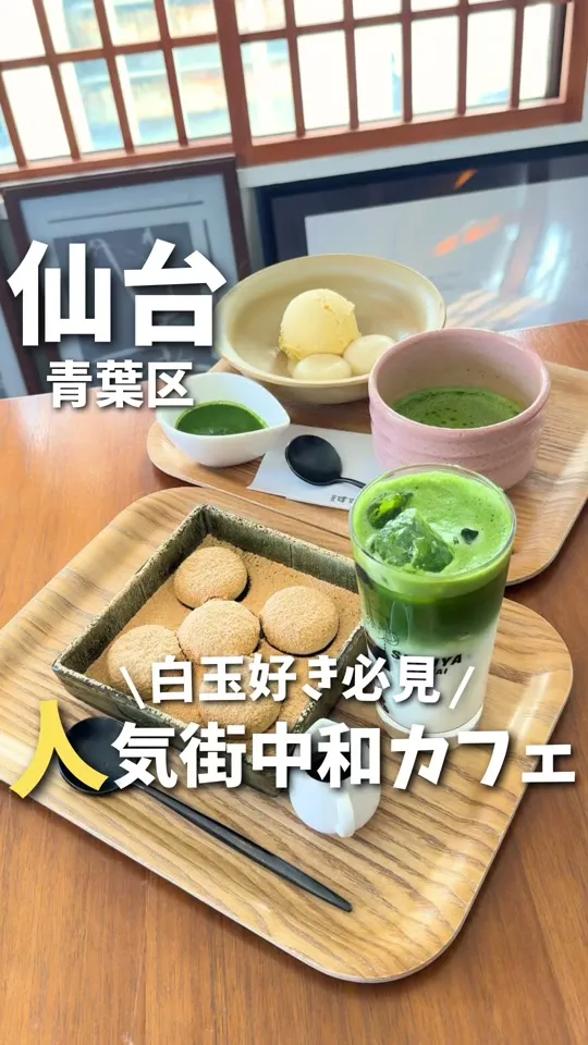 仙台市・青葉区一番町の和スイーツカフェです。2階建ての古民家風で落ち着いた雰囲気の店内、ずんだを使ったいちごずんだやずんだもち、白玉きな粉など自家製白玉が特長です。抹茶・ほうじ茶ラテなどドリンクも充実。テイクアウト可。
