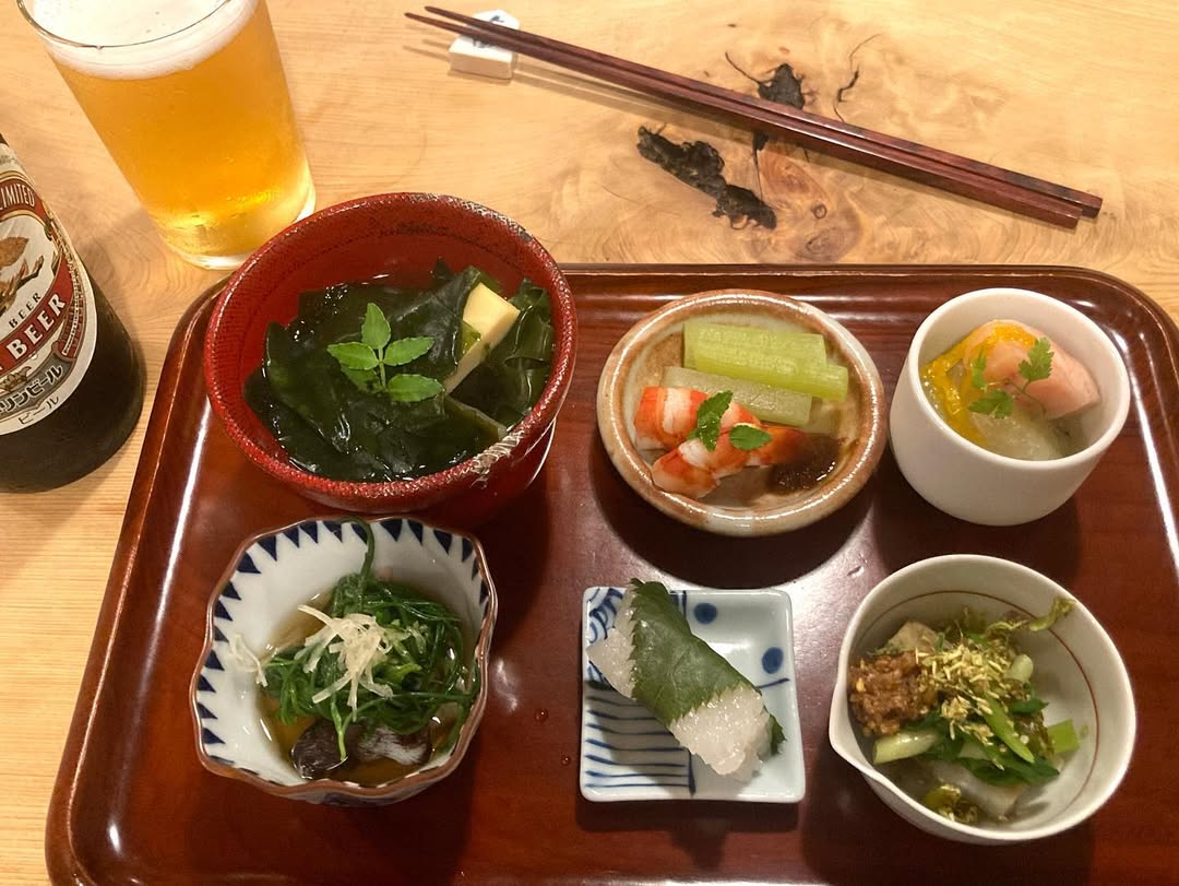 月島の和食店・ユの木では、六品のお通しがそれぞれ趣を変え、食べるたびに新しい魅力が味わえます。ヤングコーンとシュウマイもこれまでで一番美味しいと評判です。是非お越しください。