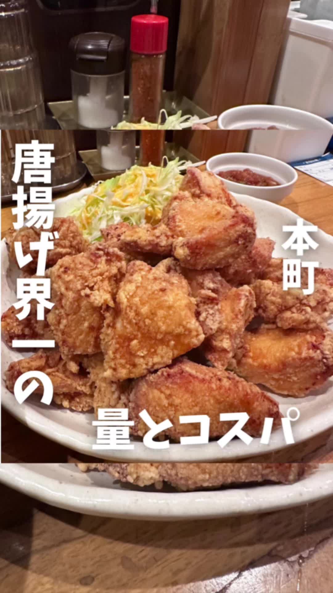 本町駅からすぐの唐揚げ専門店「煌楽」。定食は16〜20個のボリュームで、昼は1000円前後、夜のジャンボ定食は20個。現金のみ、カウンター席中心で一人でも入りやすく、テイクアウトも可能です。