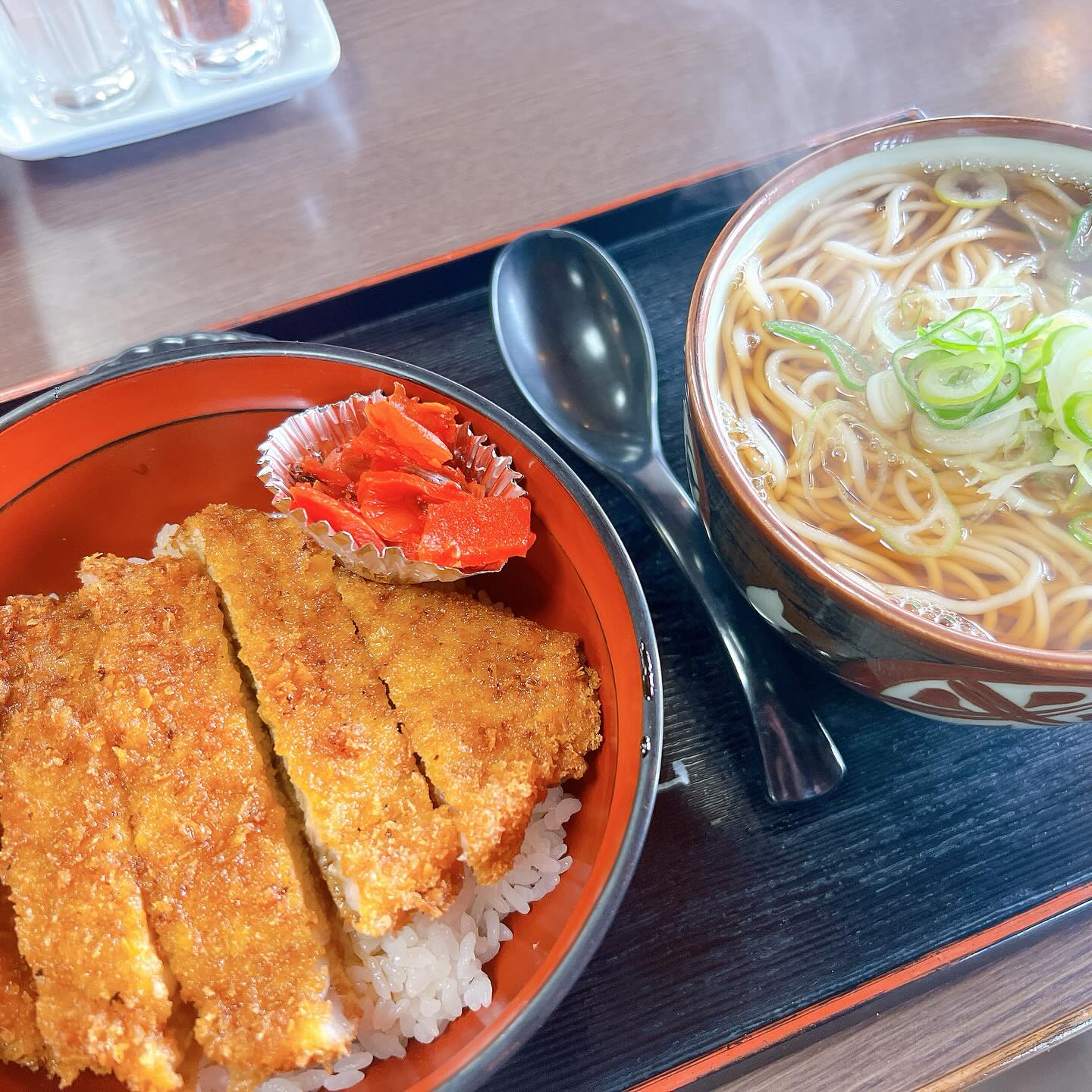 カレーそばとかつそばメニューにがあったので、カツカレーそばはありますか、と尋ねたらカレーそばのかつ乗...