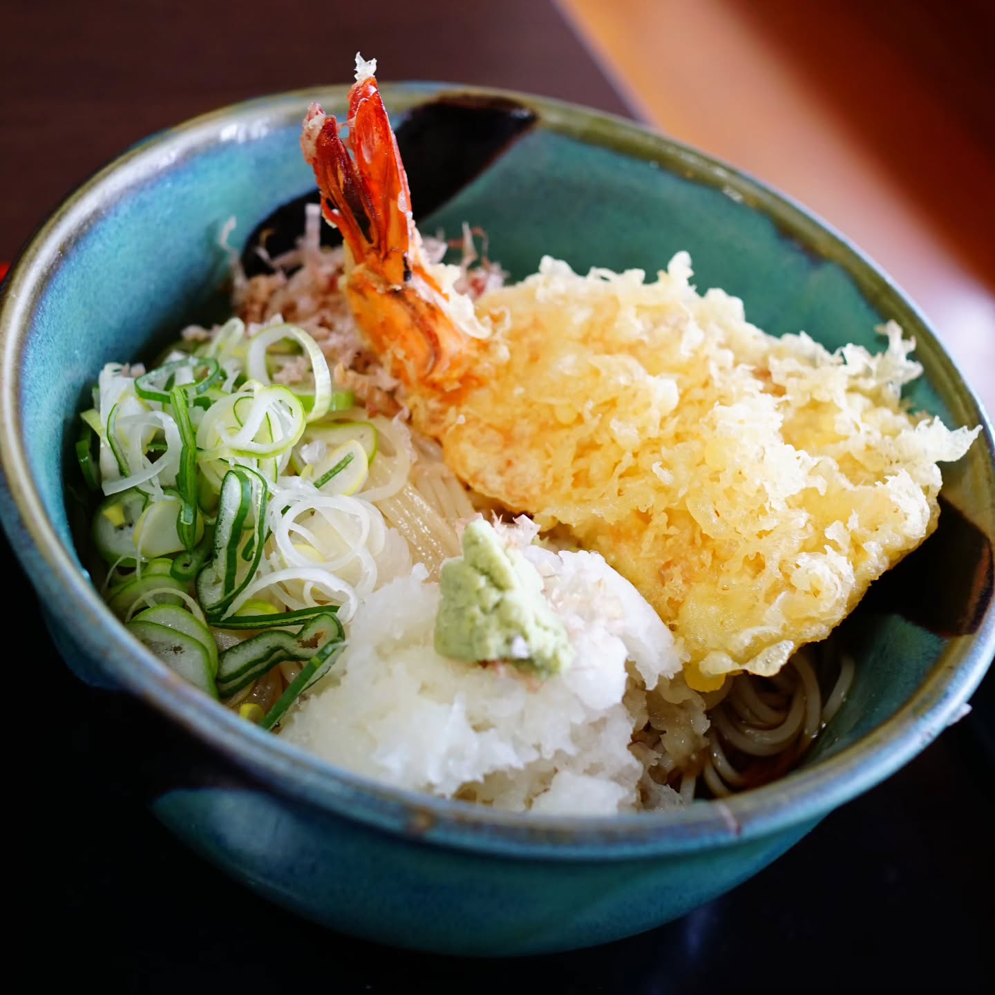 開いたえび天とたっぷりの大根おろしと鰹節。さっぱりスルスルっと食べらさる冷たいえび天おろし蕎麦、好きだなぁ。