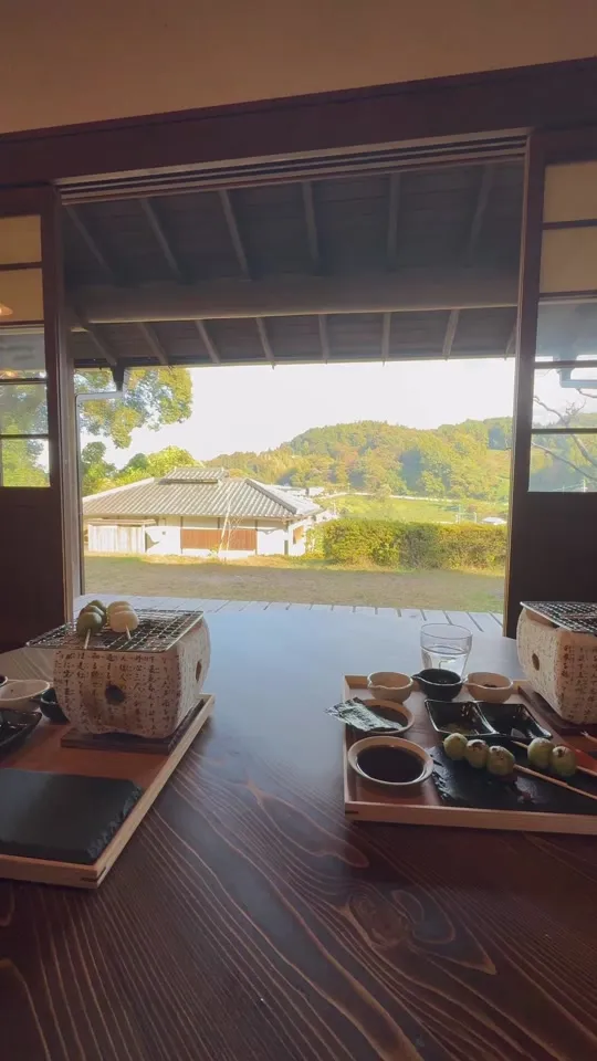可愛い古民家カフェでいただけるのは自分で焼くお団子のセット!!