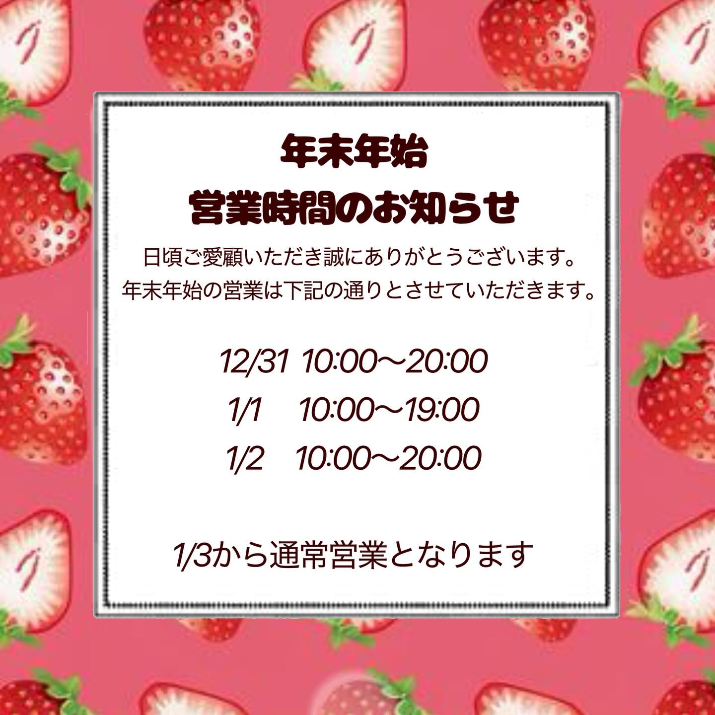 📢年末年始の営業時間のお知らせ📢...