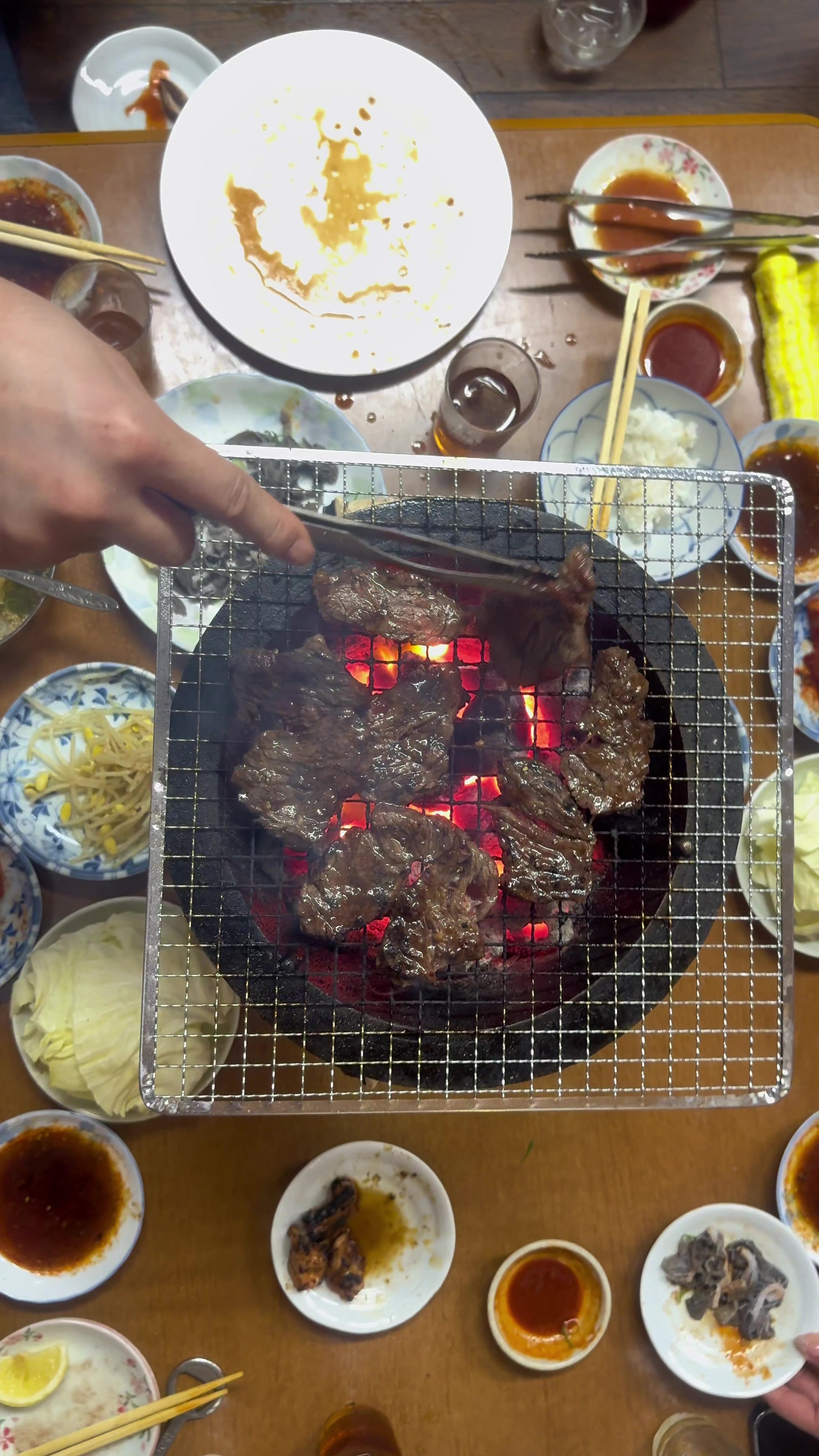 煙モクモクの戦後焼肉 地べたに座って七輪で食べる焼肉屋さんで 雰囲気150%の最高なお店