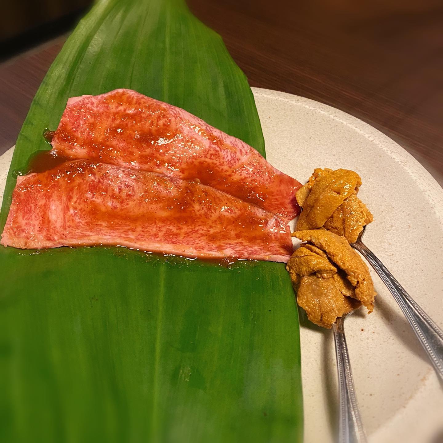 ウニをお肉にはさんで食べたのは初めて🥺✨!ウニ肉、、ウニク、、、おいしい。