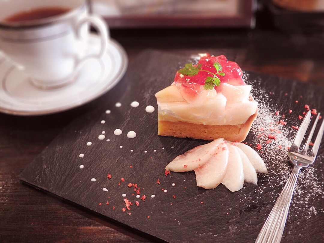 仙台の甘美処 柊 -hiiragi-は、季節素材を活かすスイーツと華やかなデコレーションが魅力のカフェです。モンブランは栗ムースとフランボワーズゼリー、桃のタルトはプレートデコが印象的。DAMO焙煎のコーヒーやパイナップルかき氷の演出も特徴。