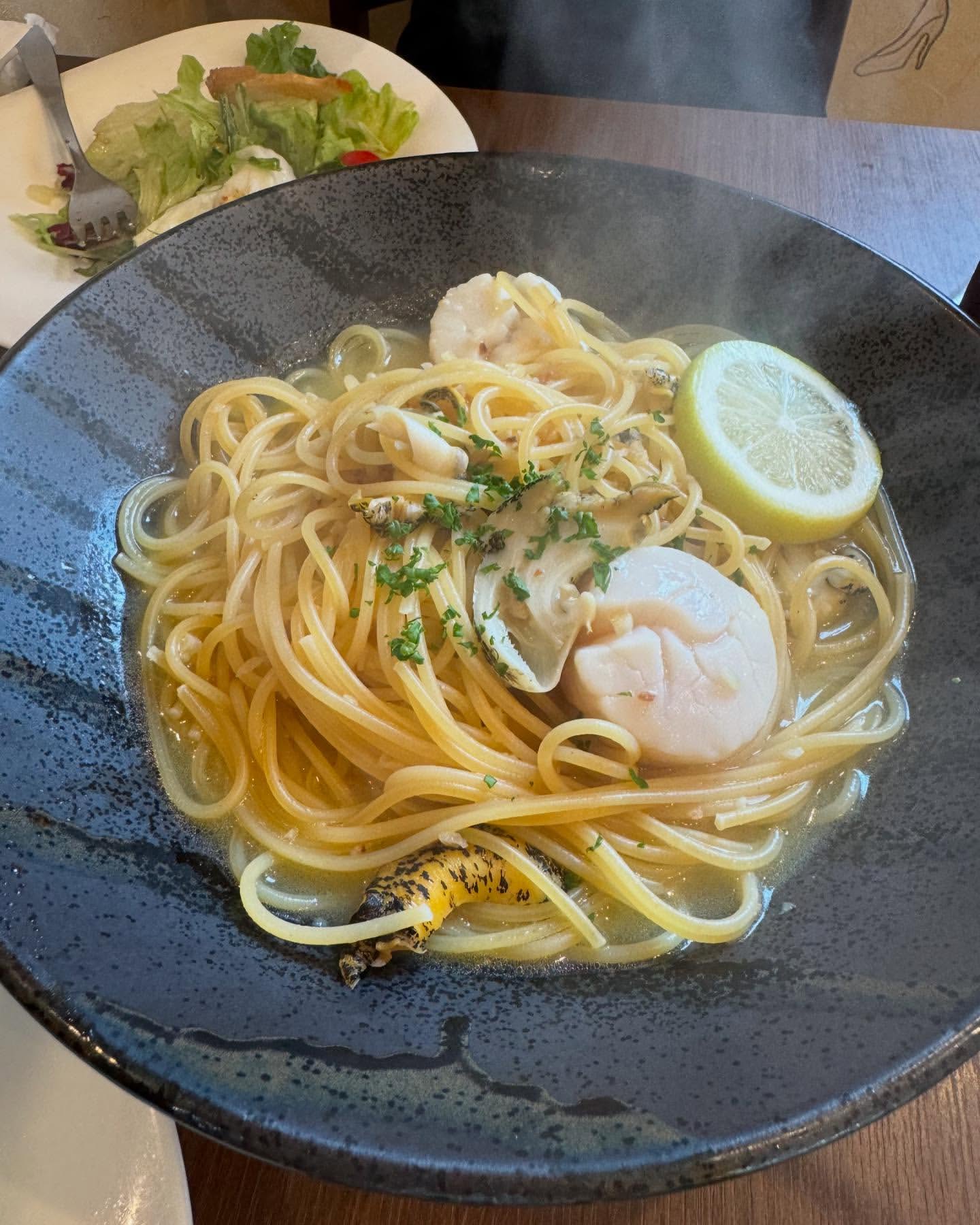デラカーサの北海道つぶと帆立の塩パスタ