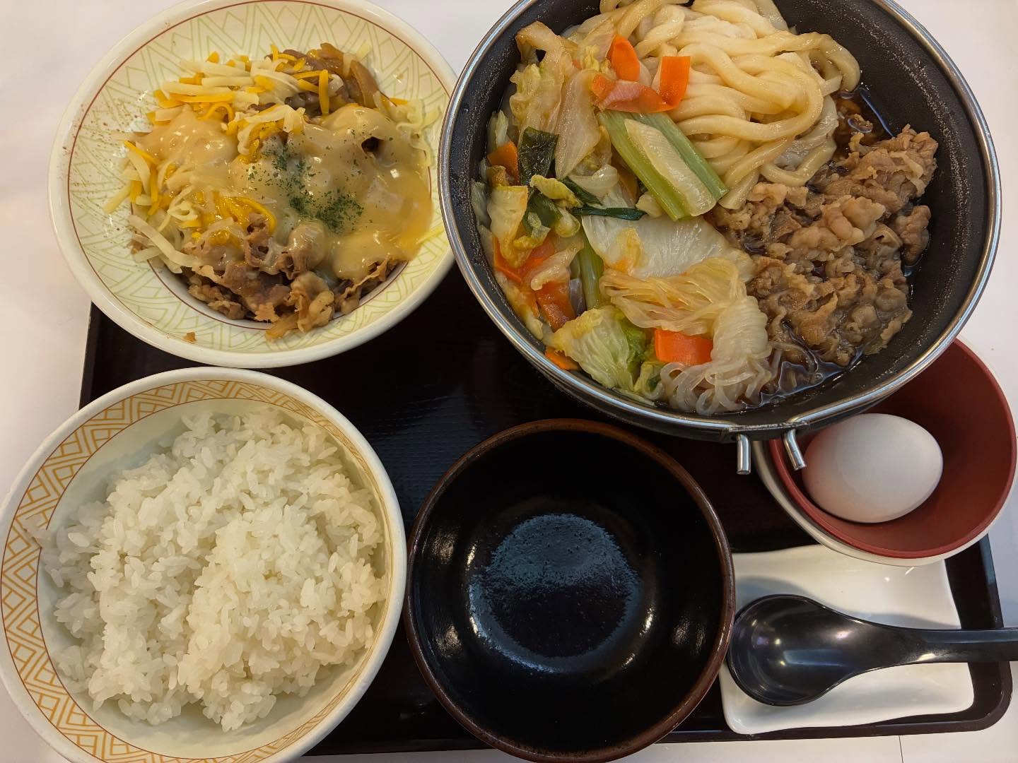 温まって腹一杯😆#すき家#チーズ牛丼#牛すき鍋定食#白ご飯党