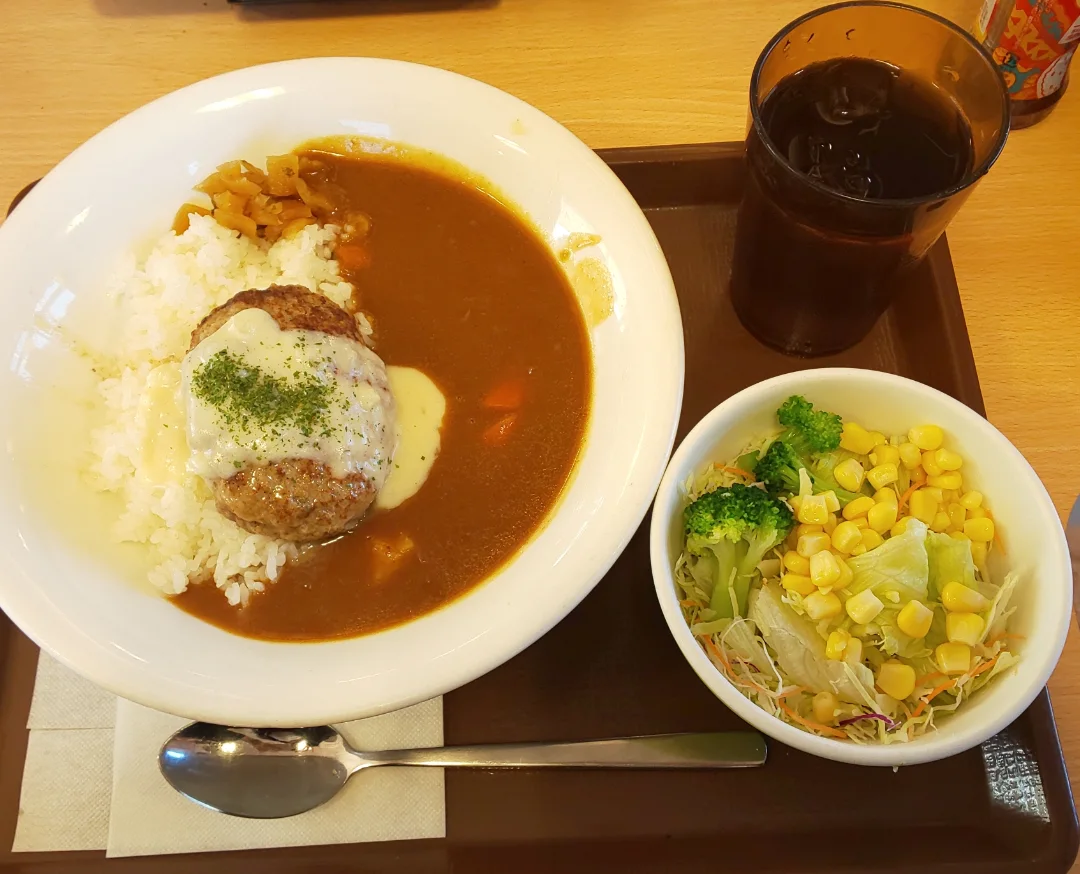 ハンバーグカレー美味しかったんだけど、意外に量があってお腹いっぱいになって苦しみながら完食!