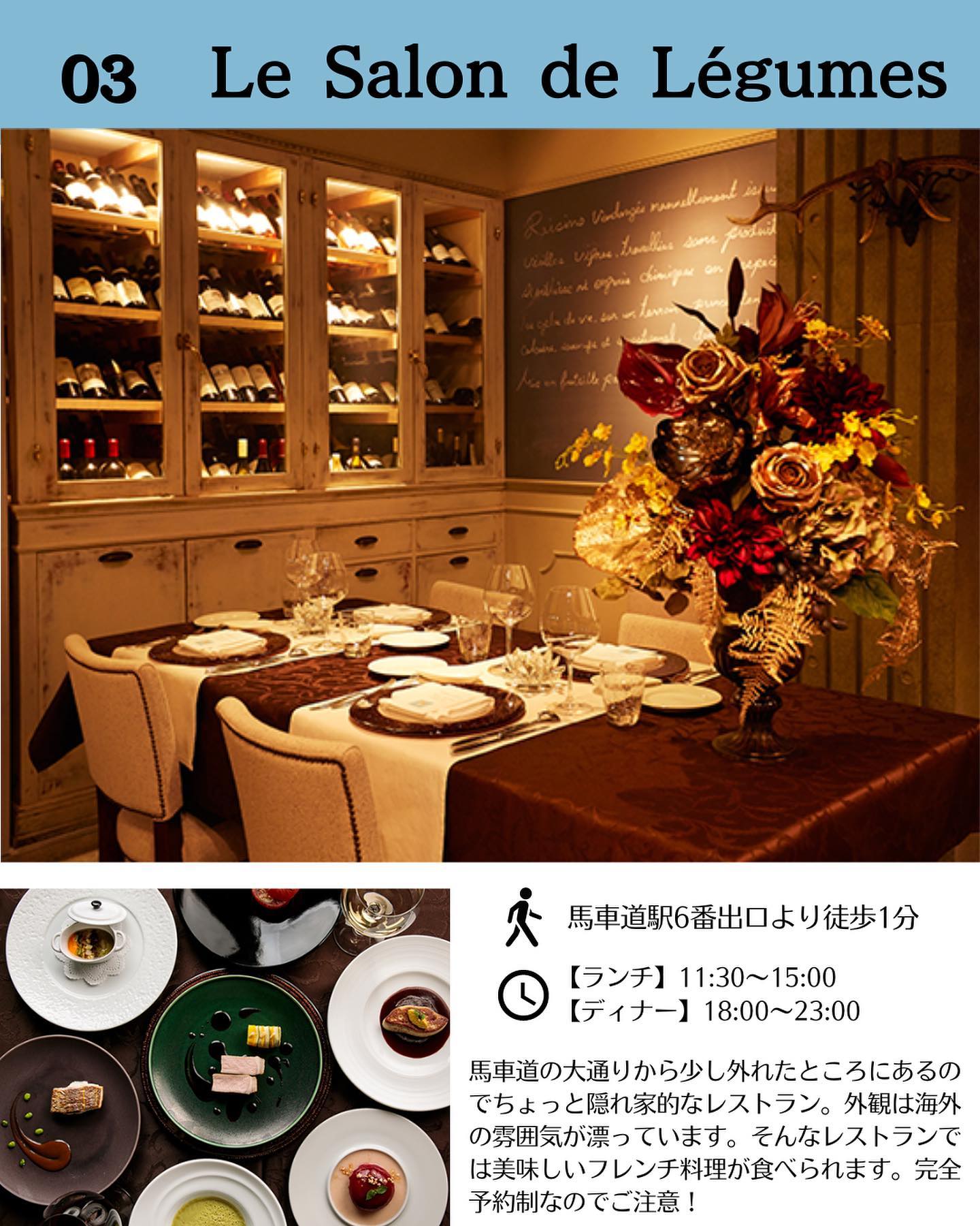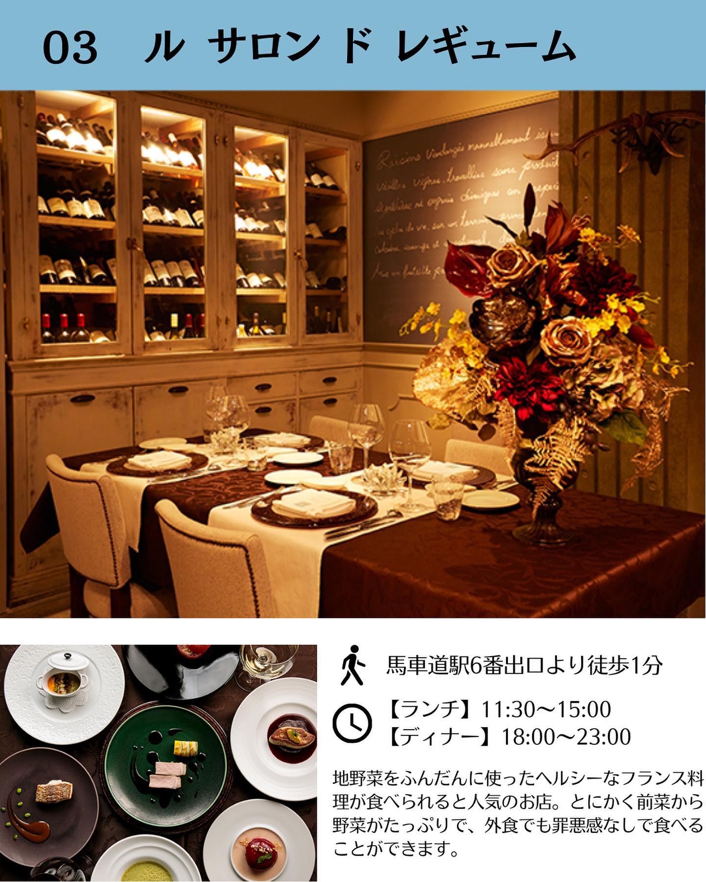 野菜を主役に据えたレストラン、Le Salon de Légumes。旬の野菜をぎっしり詰めたテリーヌ・ド・レギュームをはじめ、野菜料理を美味しく楽しめます。静かでクラシックな店内で、料理の説明も詳しくゆっくり味わえる、デートにもおすすめのお店です。