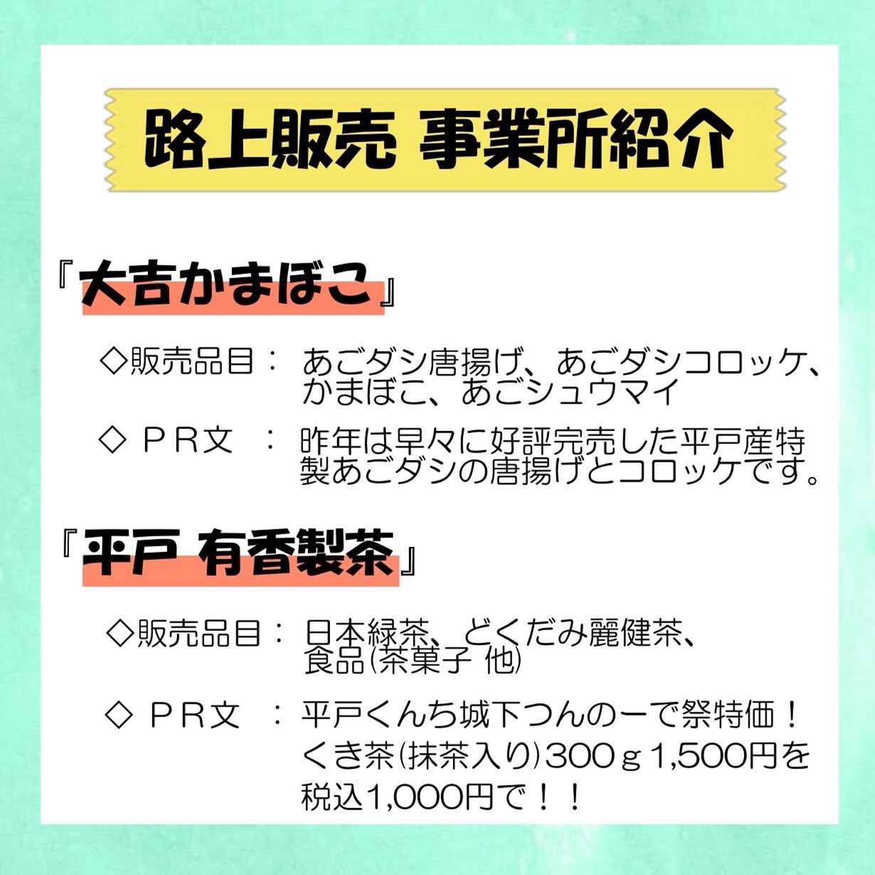 本日はあご祭りでの平戸ブースのご紹介です!