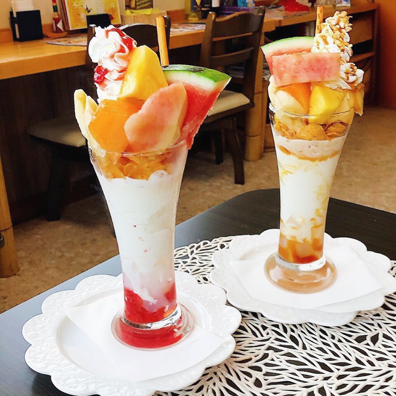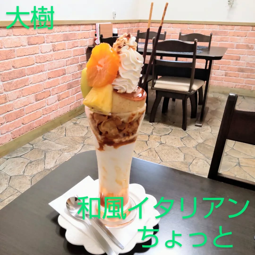 ✳︎広尾郡大樹町にあるイタリアンレストラン🇮🇹*和風イタリアンちょっと*にて【フルーツパフェ】と【キャラメルプリンパフェ】❁*...