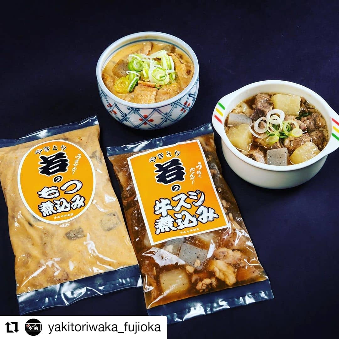 やきとり若のもつ煮込み、牛スジ煮込み、店頭及びホームページにて販売中...