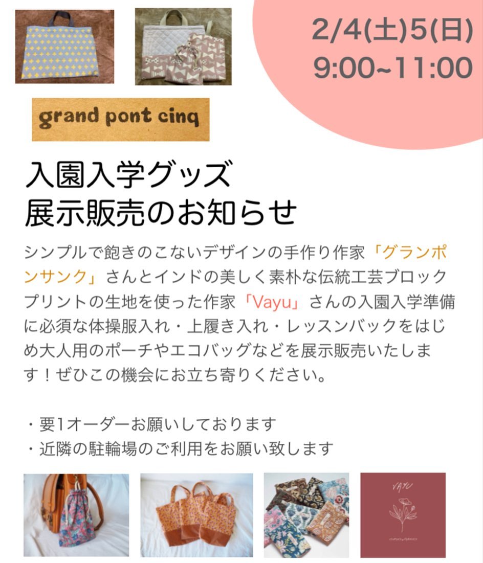 入園入学グッズの展示販売会です!