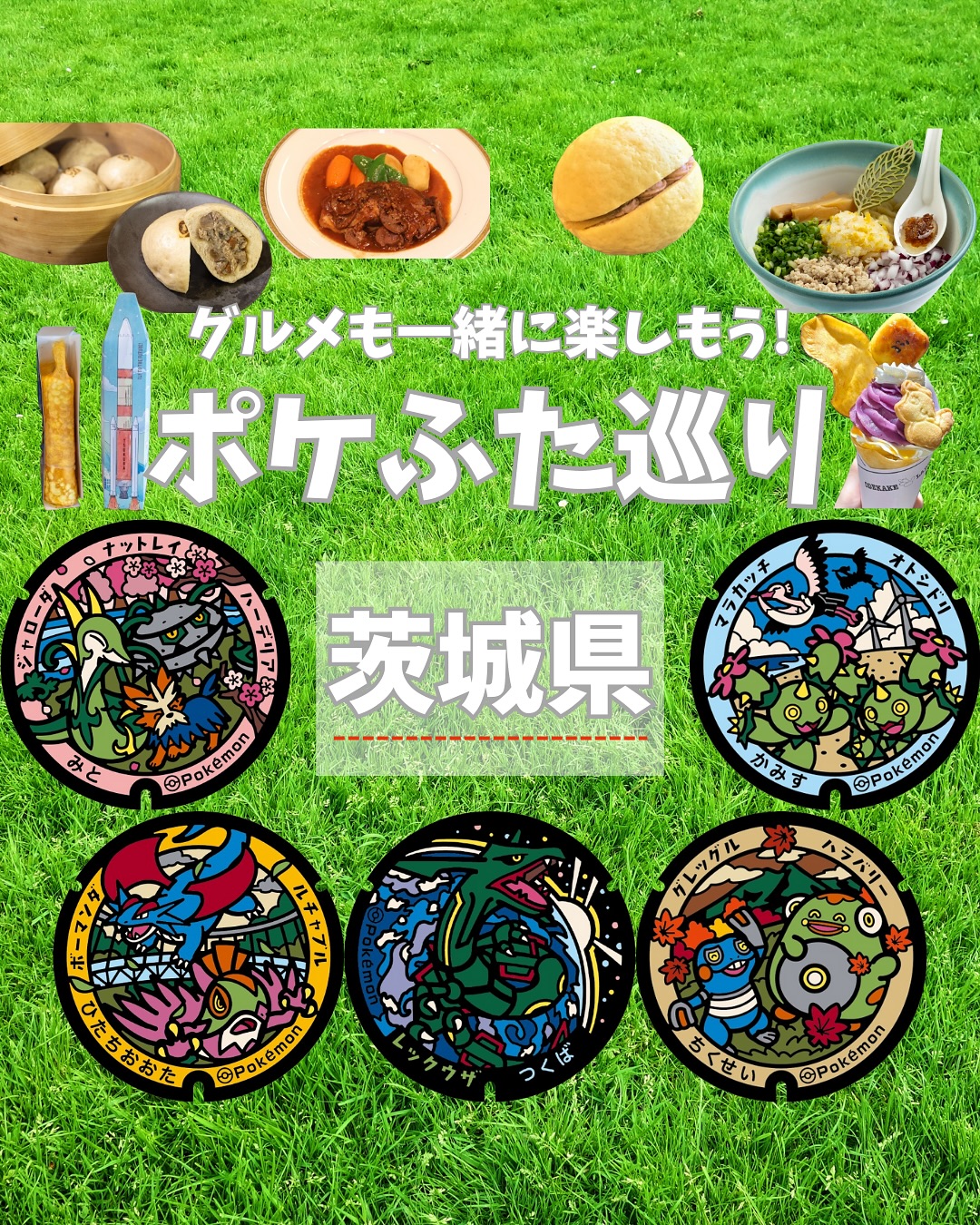 #ポケモン の絵が描かれたマンホール蓋『 #ポケふた 』が茨城県に初登場🌟県内に5つ設置されました!