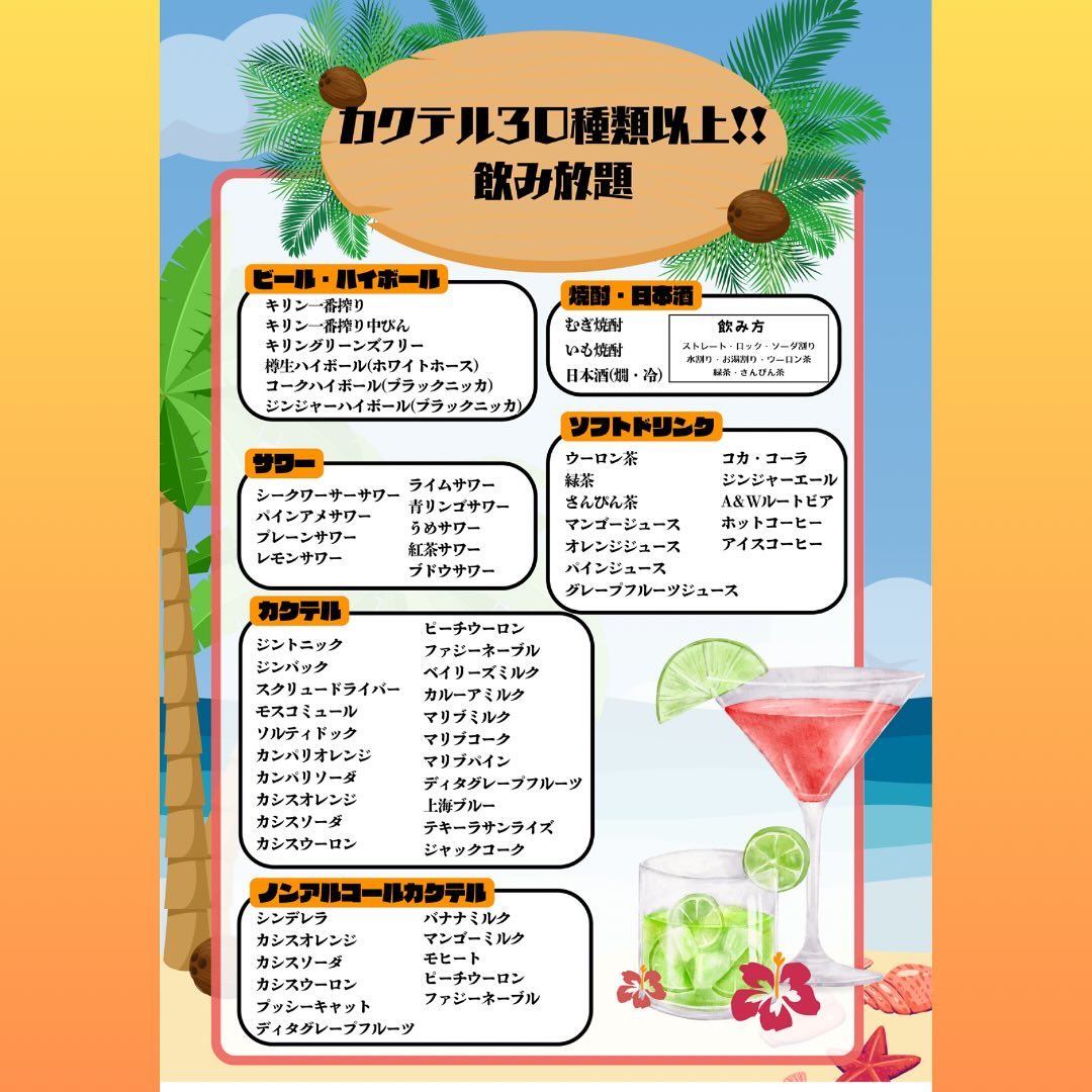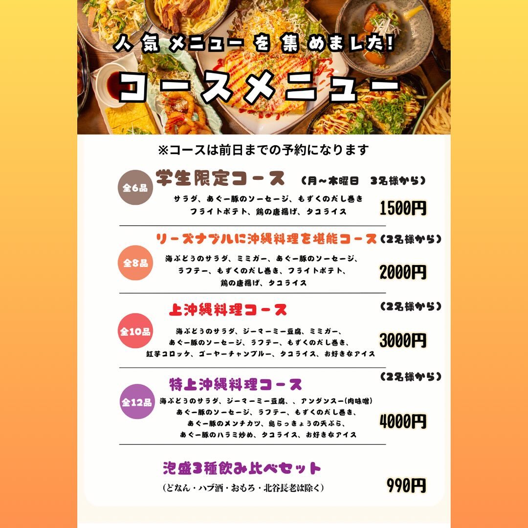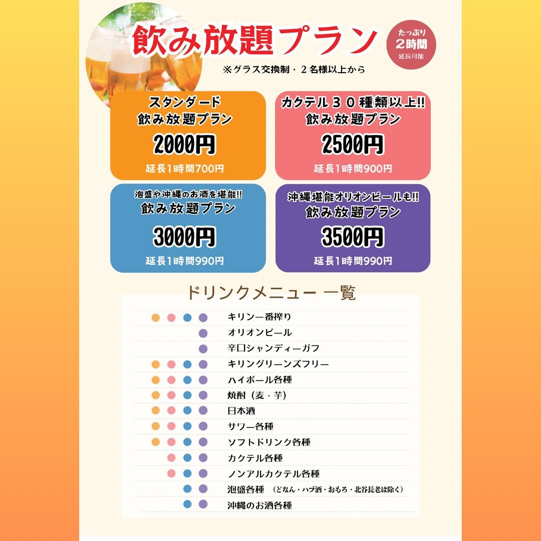 沖縄料理と居酒屋料理のメニュー...