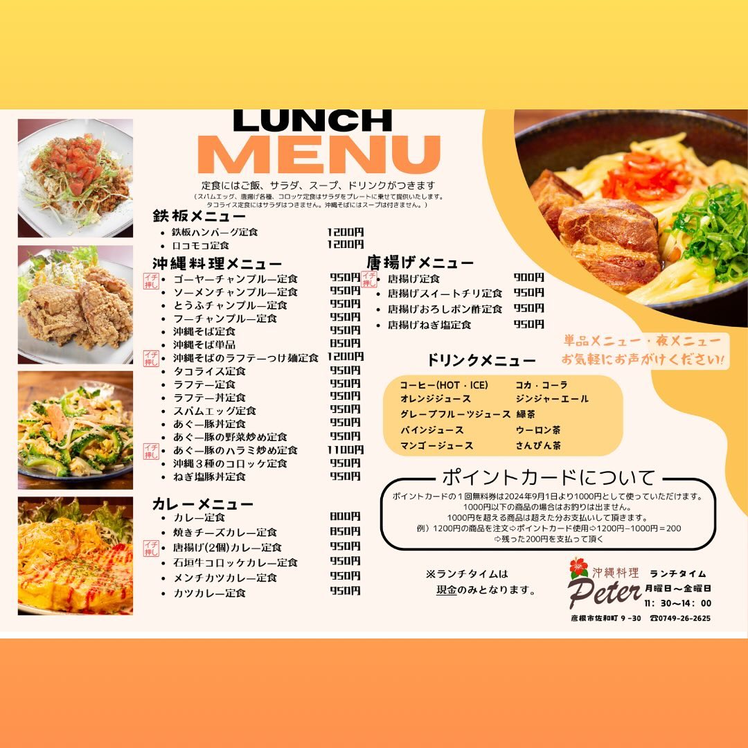 沖縄料理ピーターのメニューです!...