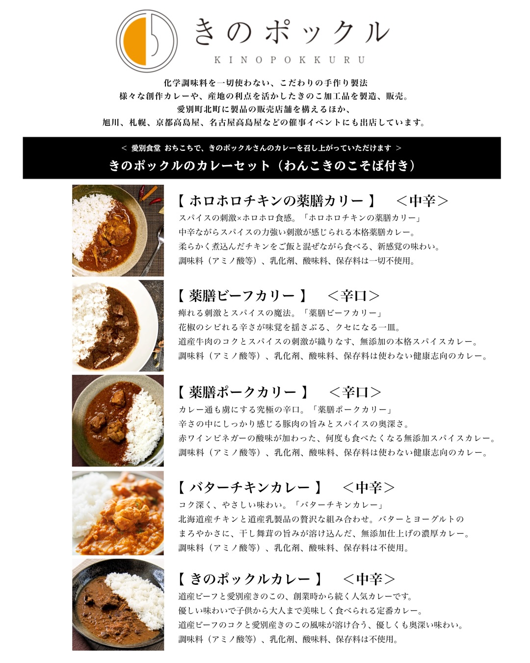 様々な創作カレーや産地の利点を活かしたきのこ加工品を