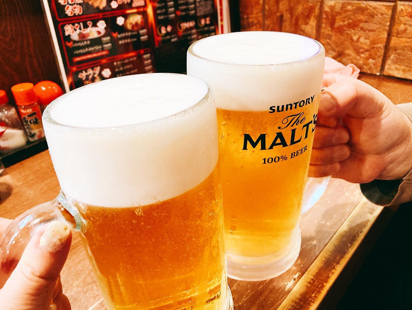 まずは、ビール大ジョッキ🍺が、労働後の五臓六腑にしみわたる〜