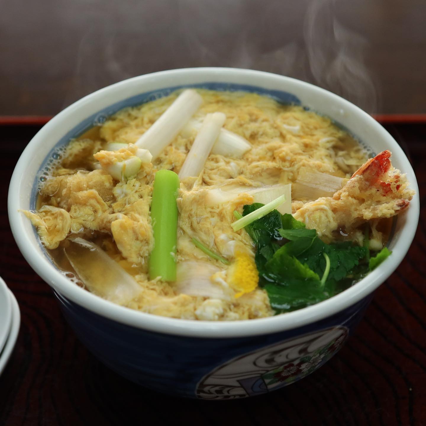 たまごとじに海老天が乗ってるもの。