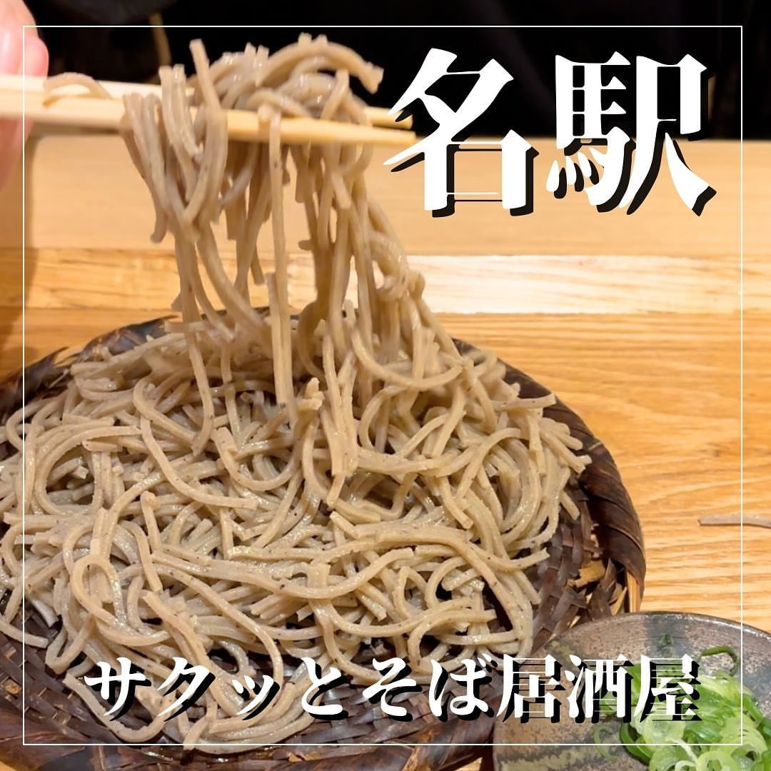 名駅南の蕎麦店。広めの和モダン空間にジャズが流れ、十割そばと焙煎くるみ蕎麦が楽しめます。昼はハッピーアワーで生ビール275円。春野菜の天盛り、ざるそば、カレー南蛮が人気。丁寧な接客も魅力。