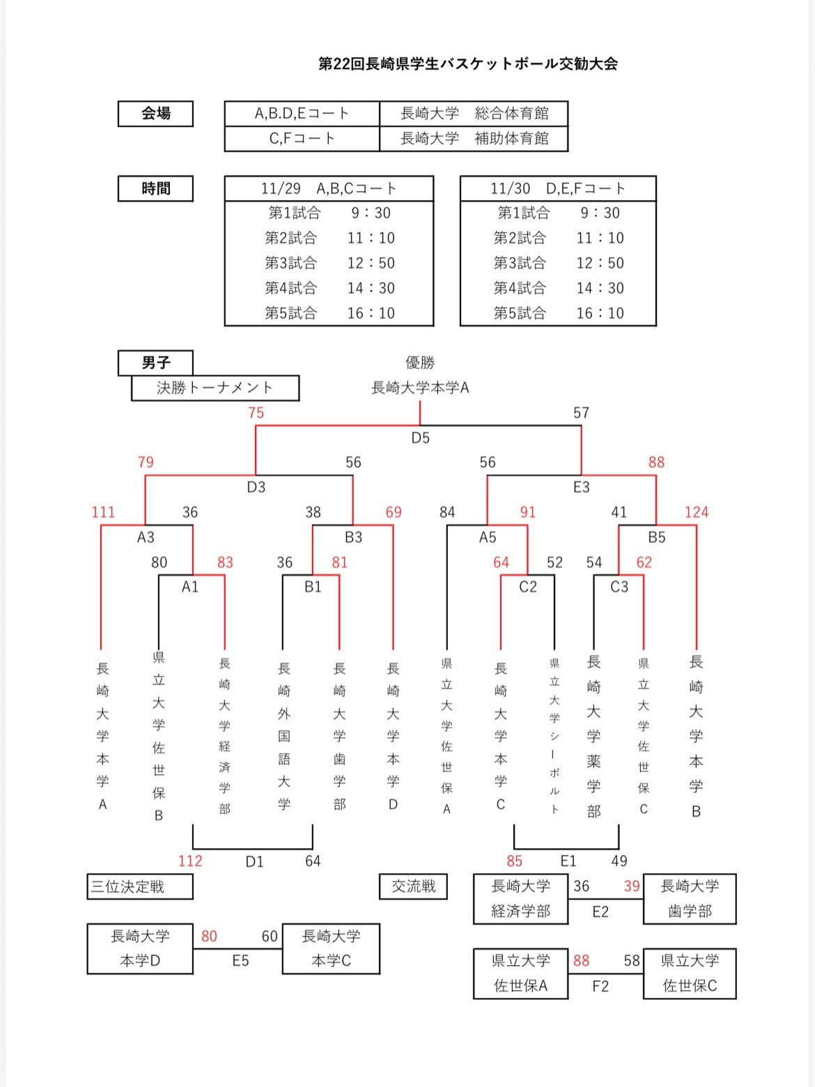 第22回長崎県学生バスケットボール交歓大会の結果になります。