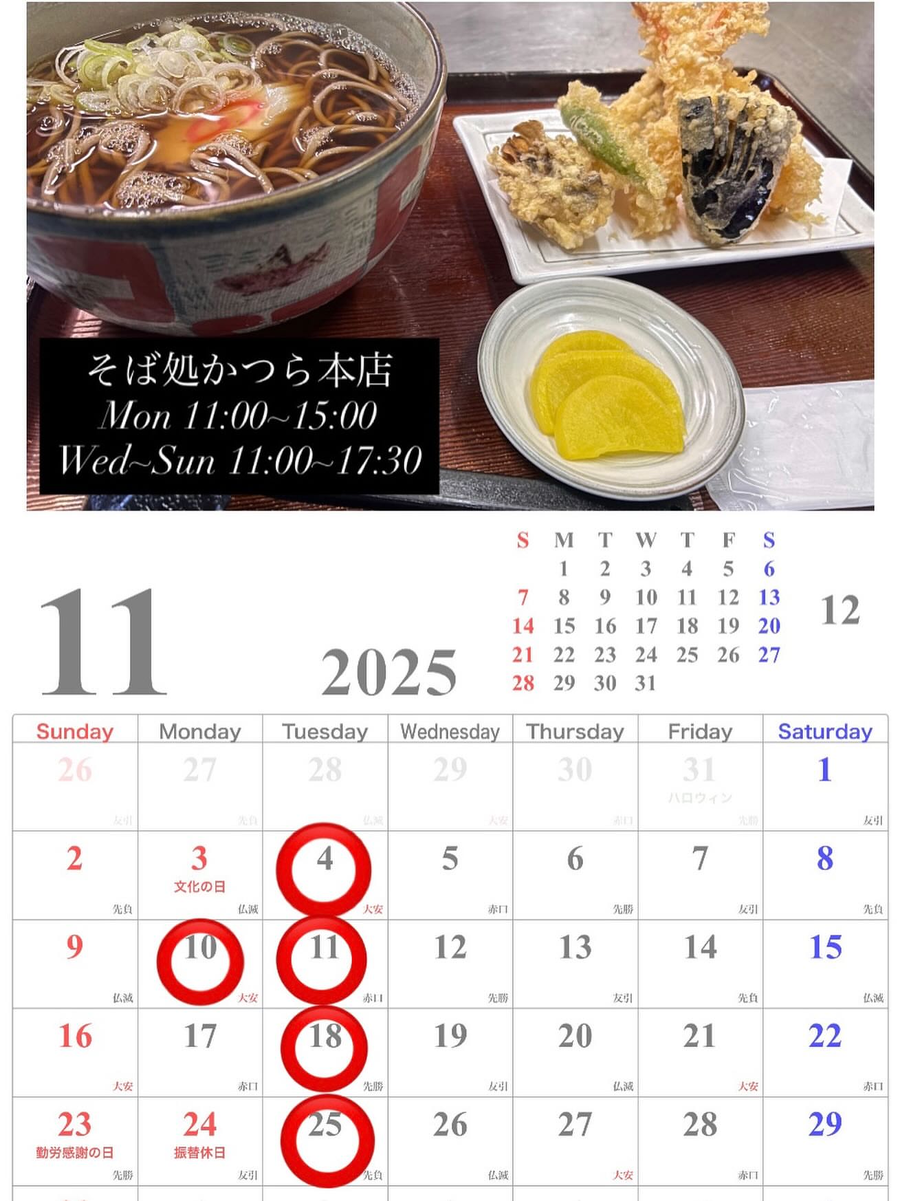毎度ありがとうございます。そば処かつらです。