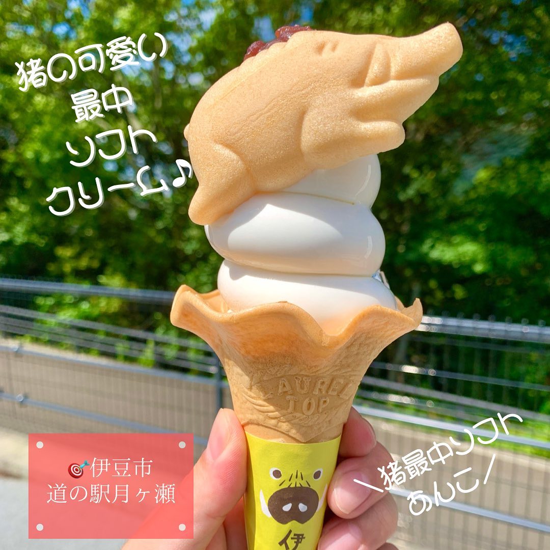 猪の最中にあんことミルクソフトクリーム🍦