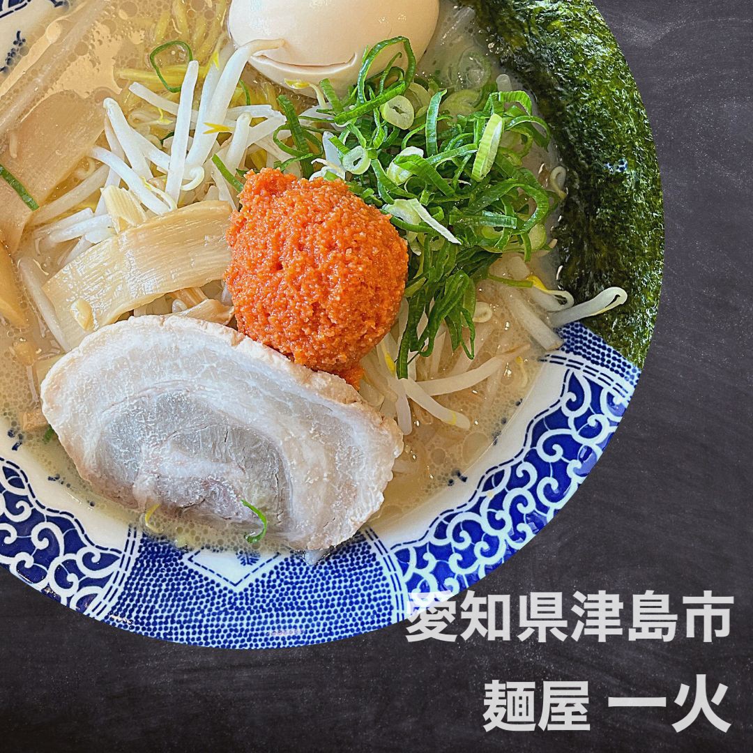 津島市蛭間町桝田277の麺家一火津島店は、博多直送の明太とんこつラーメンが看板です。辛麺・ピリ辛台湾丼も人気で、麺大盛り無料です。明太子を溶かすと辛味が倍増する独自の味です。11:00-15:00/17:30-22:00。12月26日リニューアルオープンです。