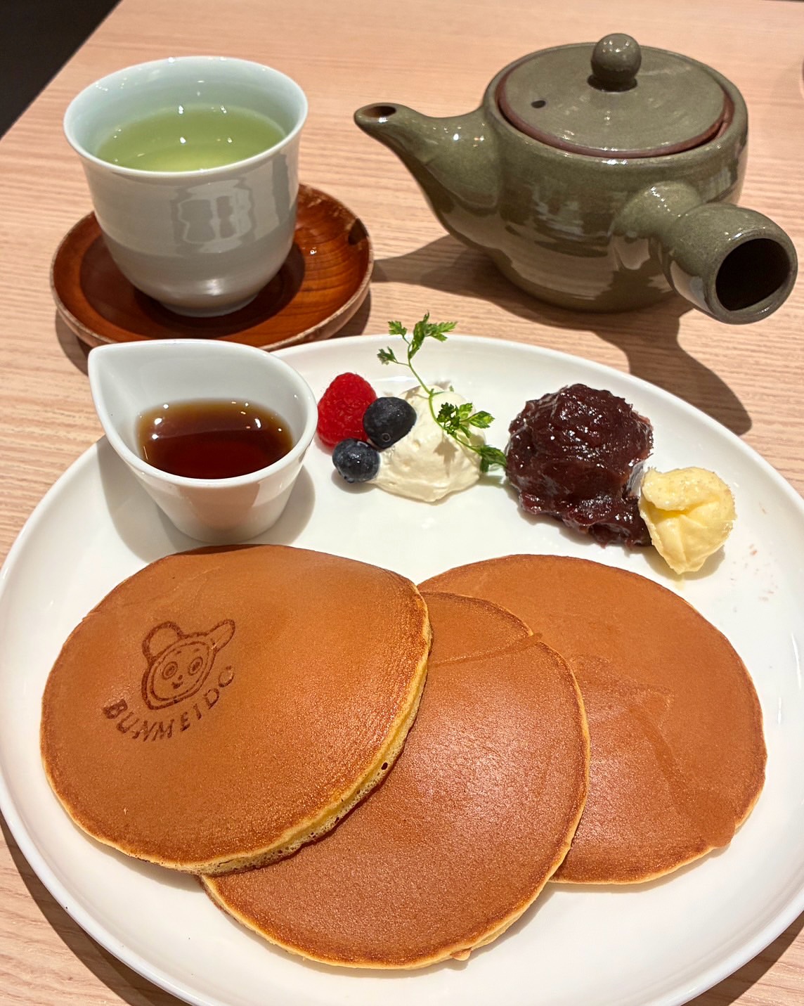 14:00以降限定の、三笠山(文明堂のどら焼き)の生地を使用した「焼きたて三笠パンケーキ」をいただきました🥞