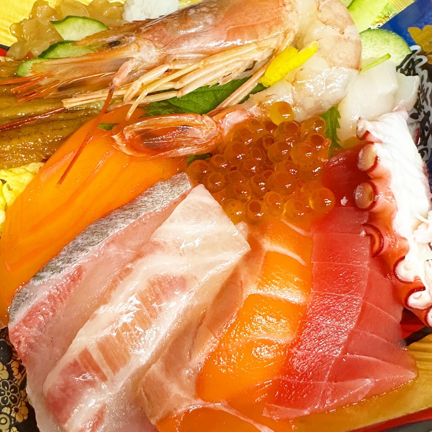 今日は東山市場のお魚屋さん、魚盛さんの海鮮丼🦐