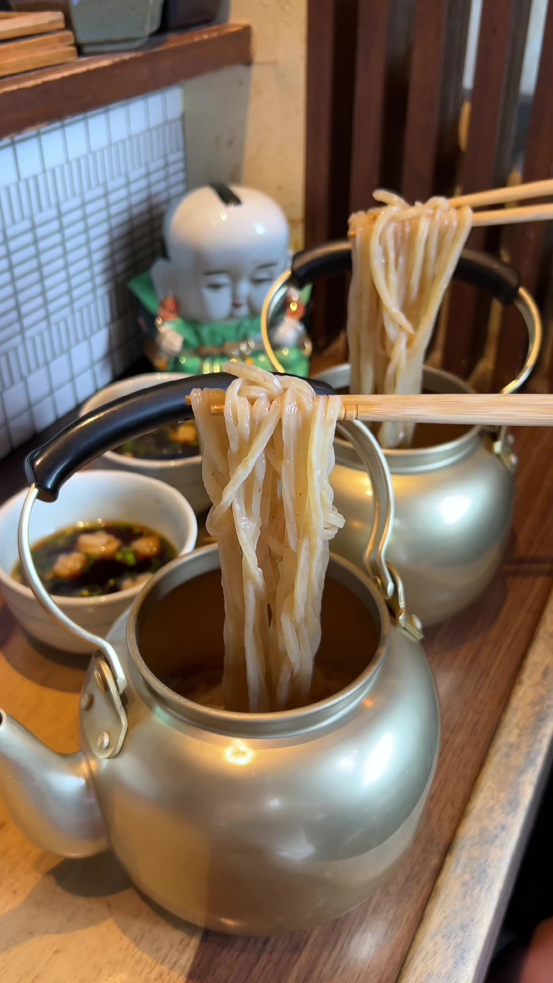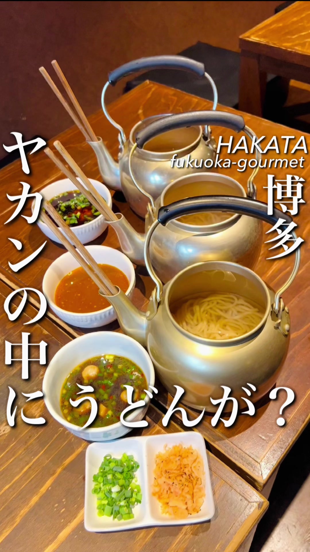 🏮🇯🇵博多ど真ん中!!櫛田神社そば♪やかんの中からうどんでてくる斬新な『ずぼらうどん』🇯🇵...